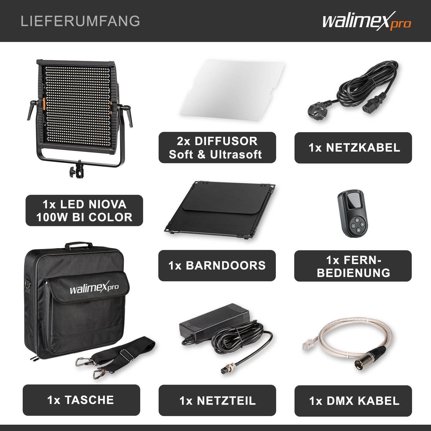Walimex pro LED Niova 100-F Pro 100W Bi-Color Flächenleuchte dimmbar Videolicht