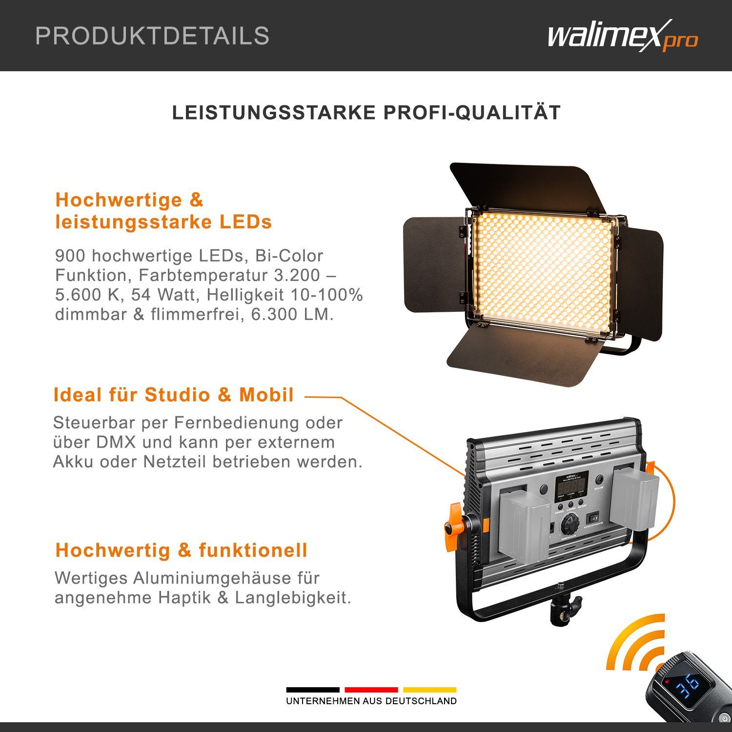 Walimex pro LED Niova 900 Plus Bi Color Flächenleuchte Videoleuchte Studiolicht