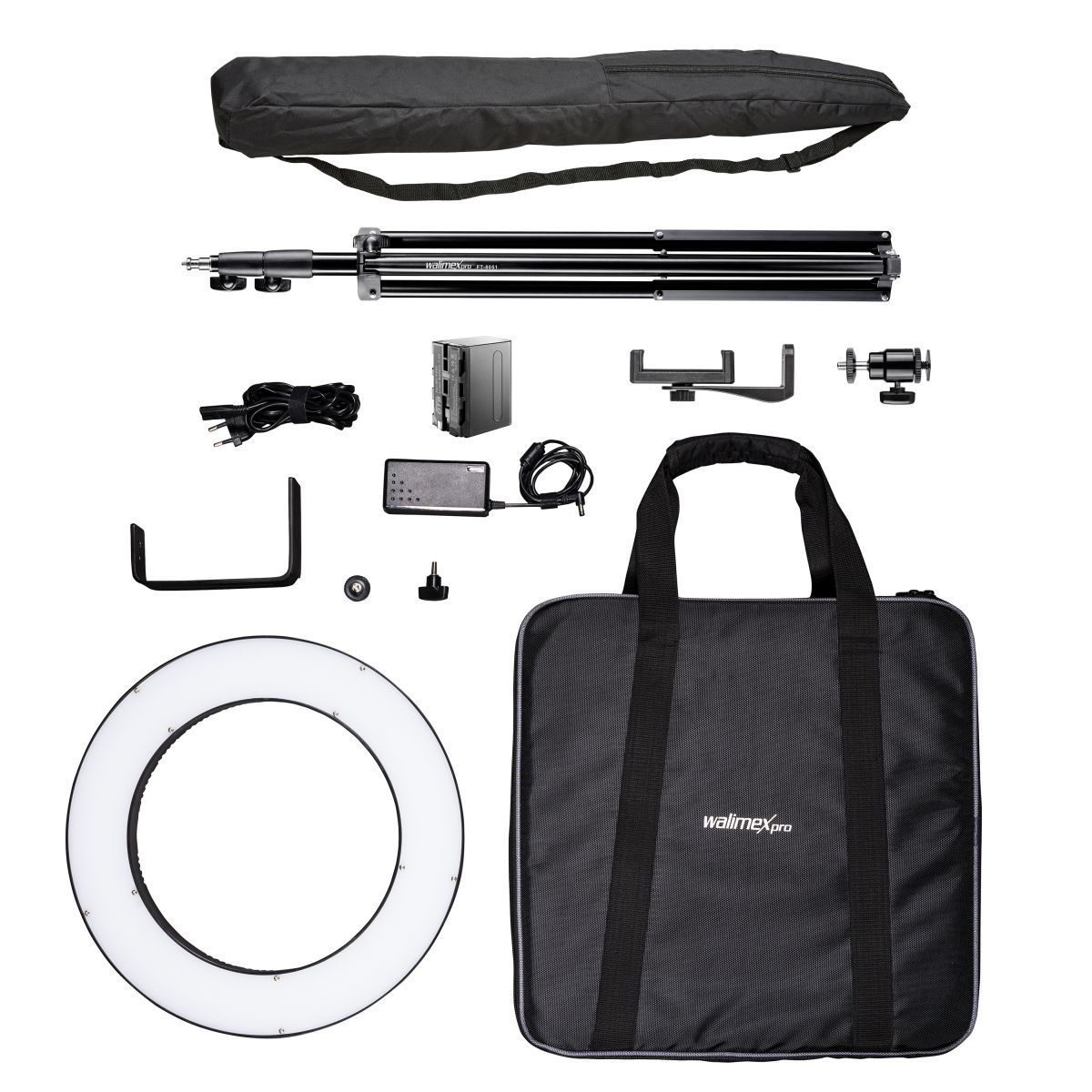 Walimex pro LED Ringleuchte 380 23W Ringlicht Set Leuchtring Stativ Akku Leuchte