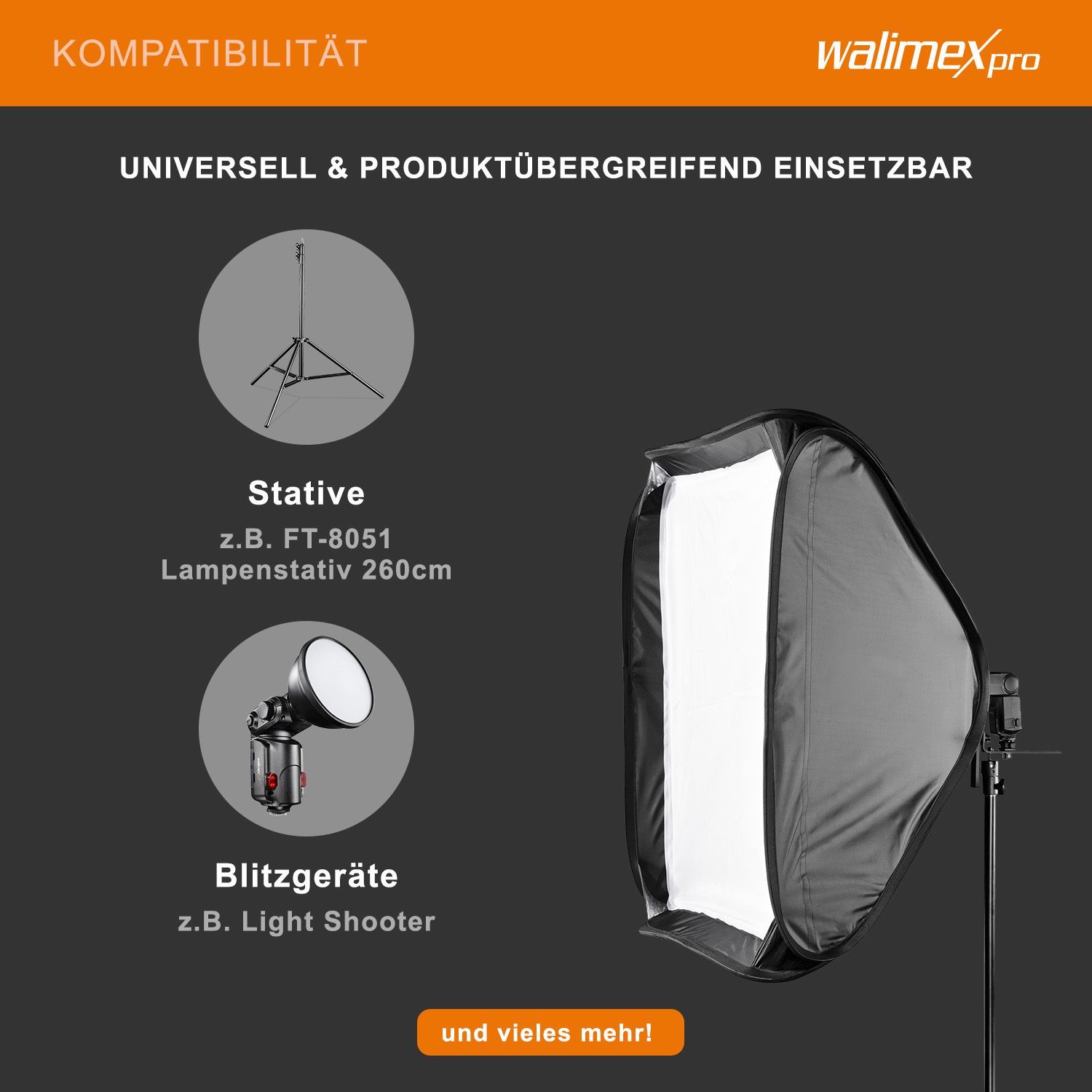 Walimex pro Magic Softbox 60x60x40cm Lichtformer 360° mit Blitzhalterung Studio