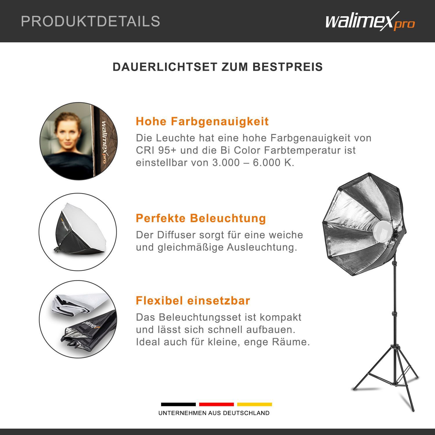 Walimex pro Octagon Softbox Fotostudio Set 60W LED Leuchte Videoleuchte Bi-Color