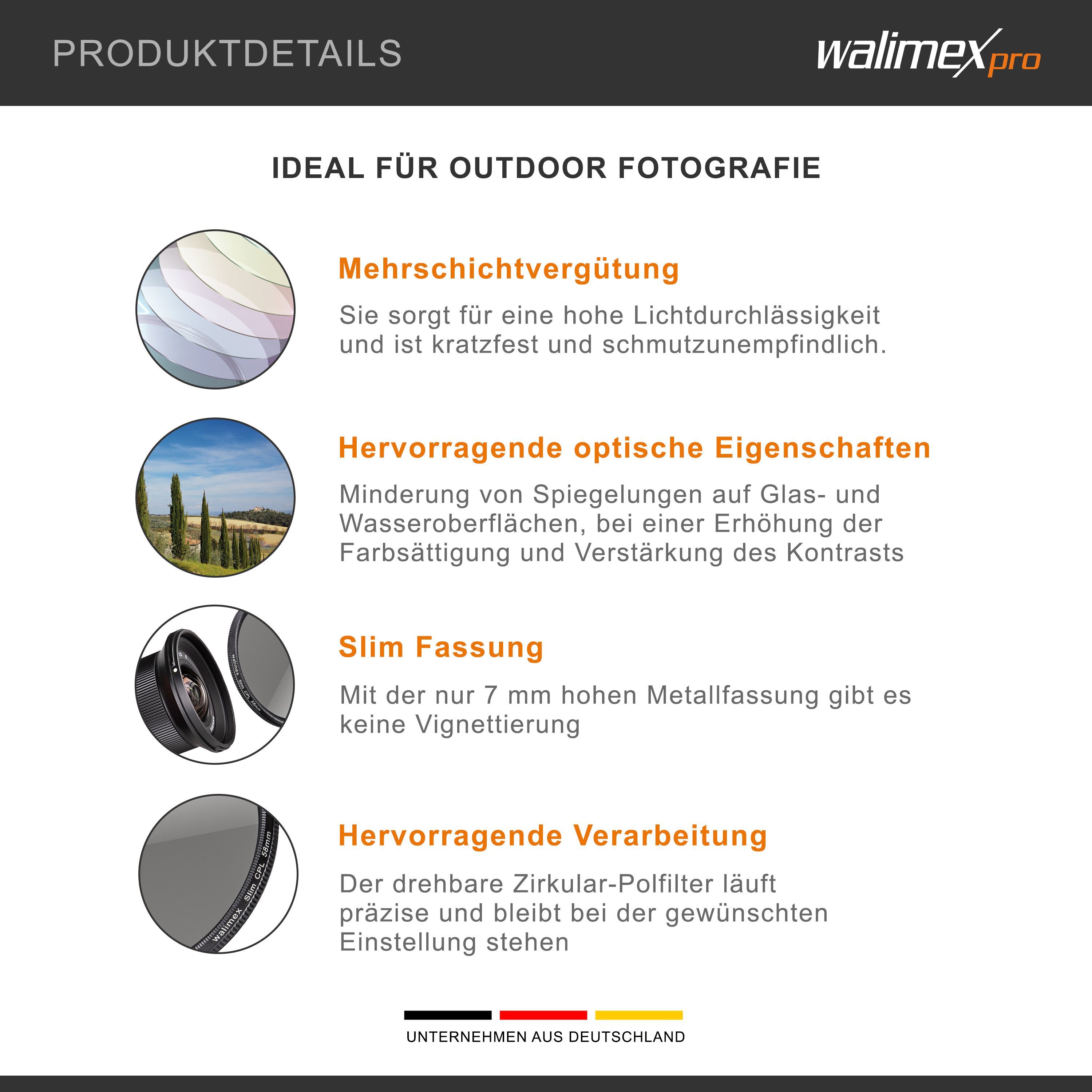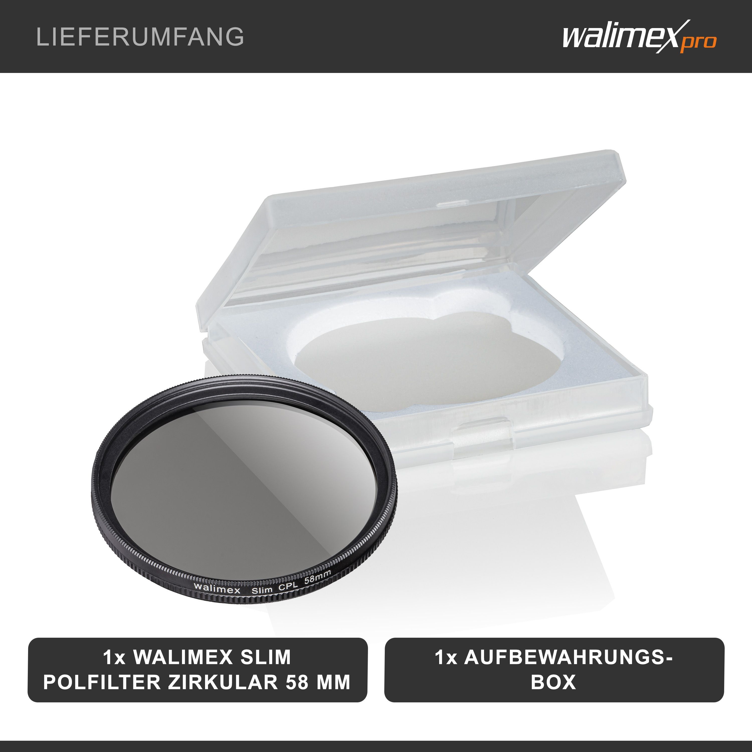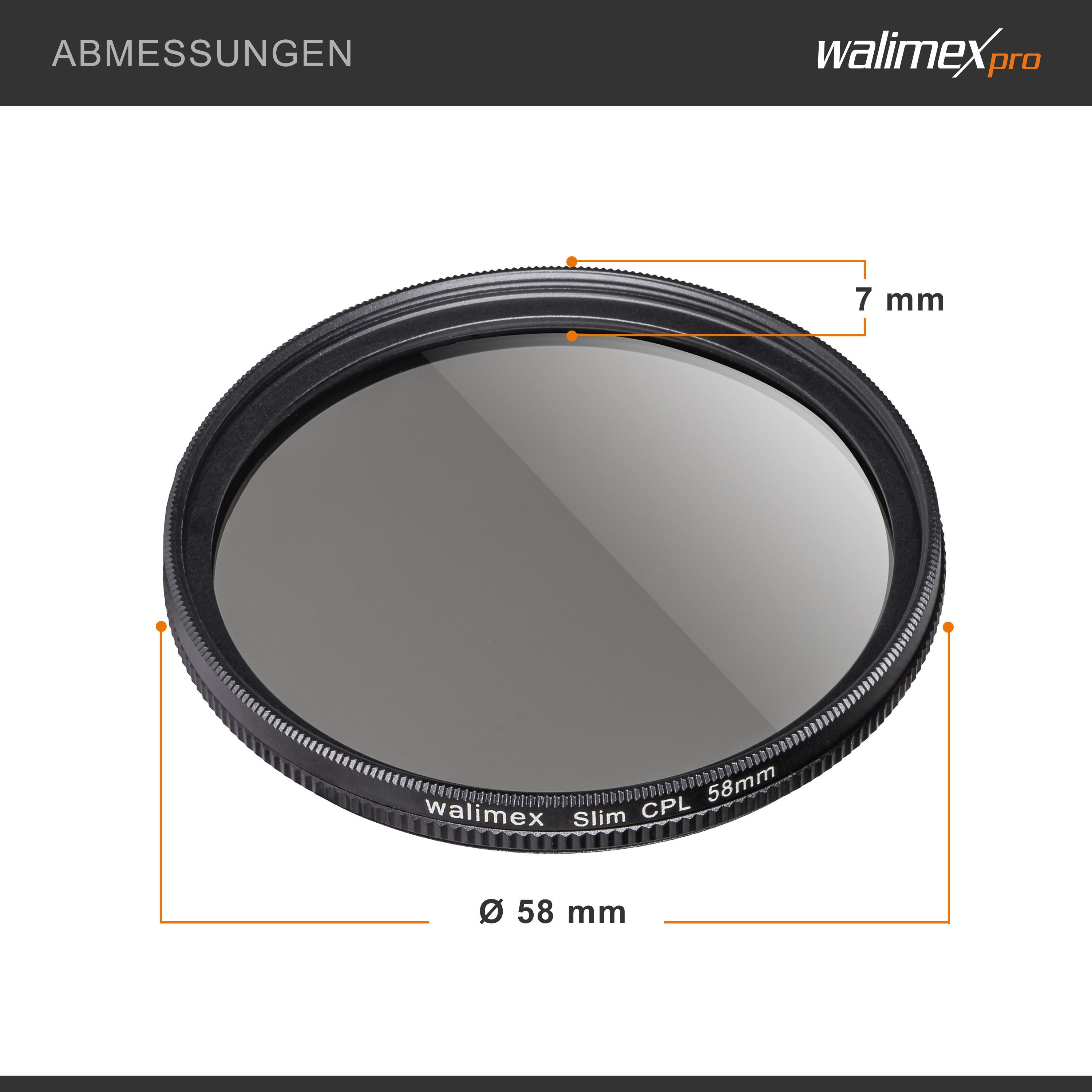Walimex pro Polfilter zirkular 58mm Polarisationsfilter Schutzhülle CPL Filter