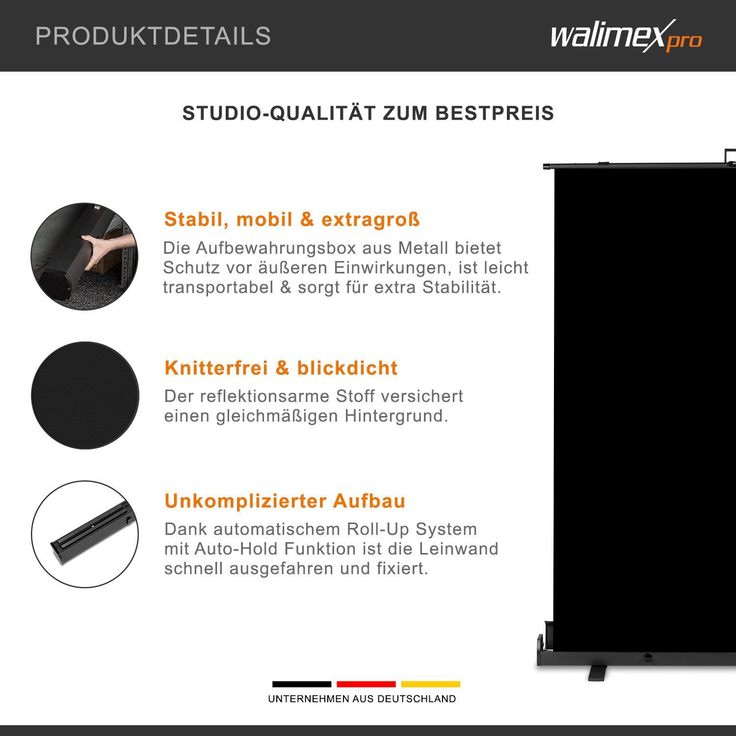 Walimex pro Roll-up Hintergrund schwarz 155x200cm Fotohintergrund Fotostudio
