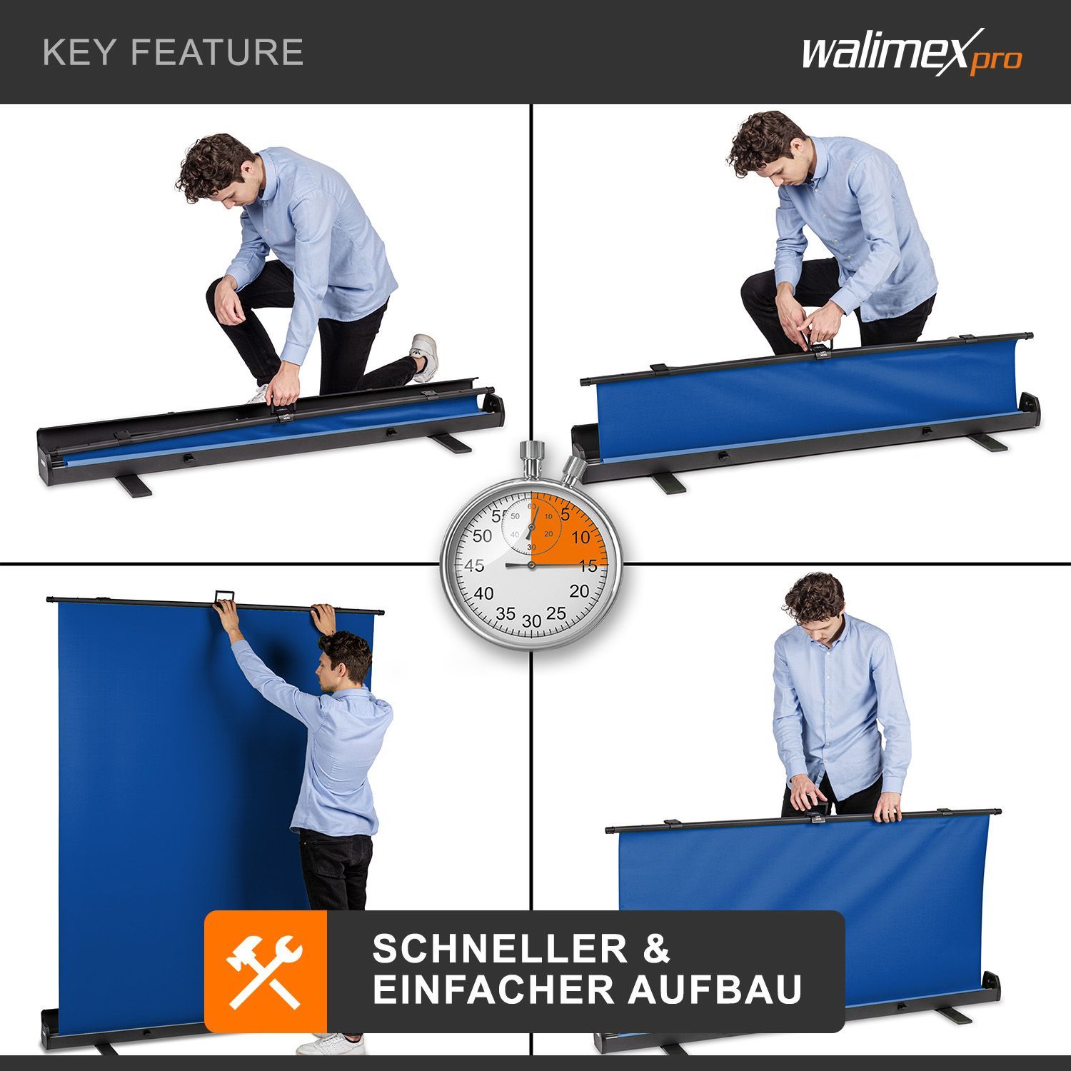 Walimex pro Roll-up Panel Hintergrund blau 155x200cm Fotohintergrund Fotostudio