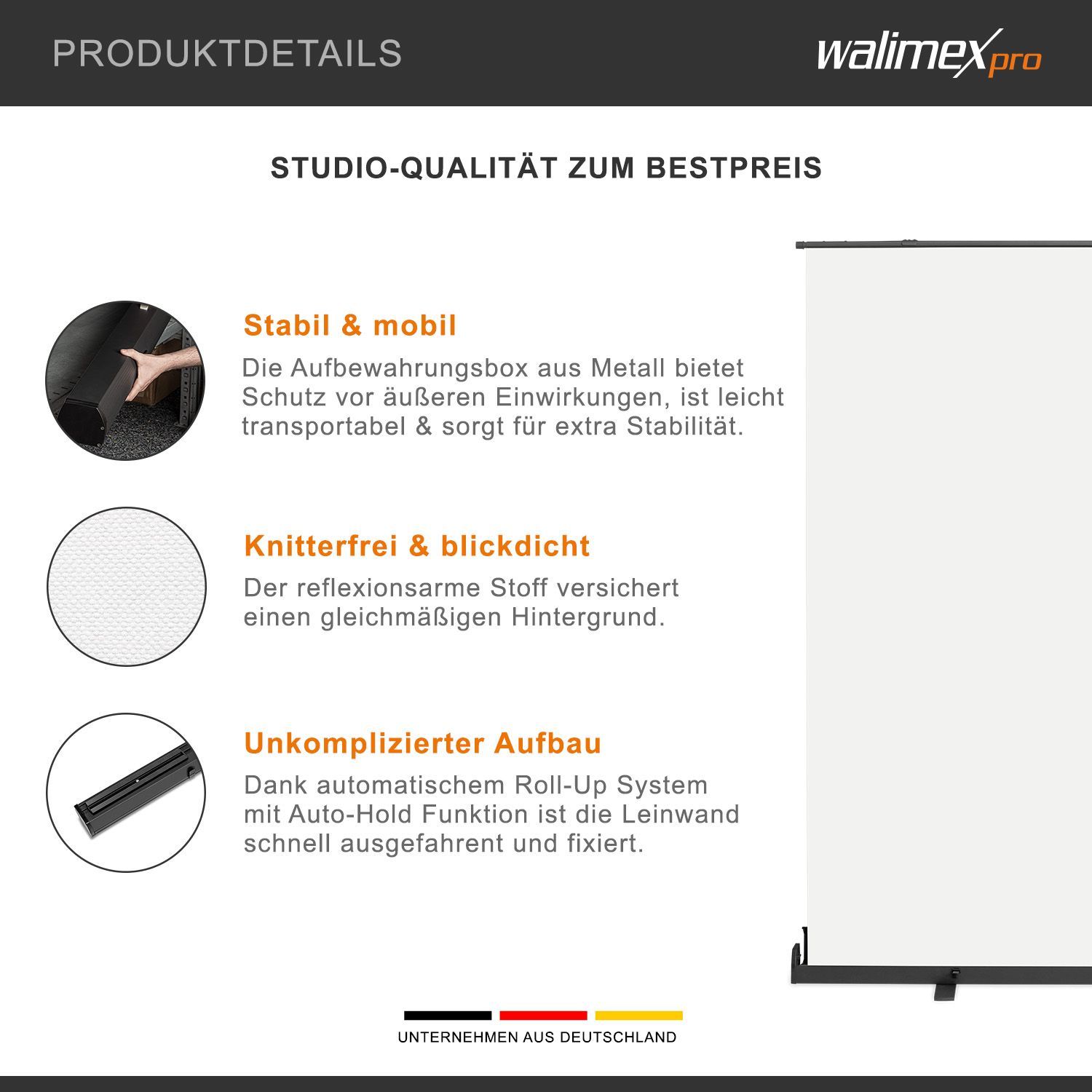 Walimex pro Roll-up Panel Hintergrund weiß 210x220cm Fotohintergrund Fotostudio