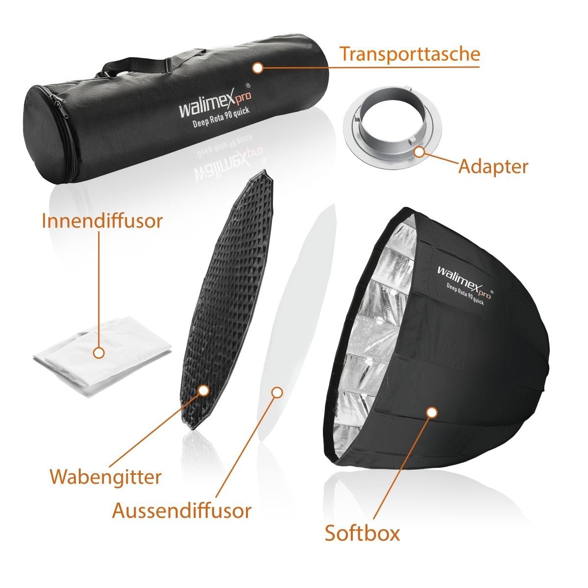 Walimex pro Softbox Studio Line Deep Rota QA90 70x90x90cm Diffusoren K Serie