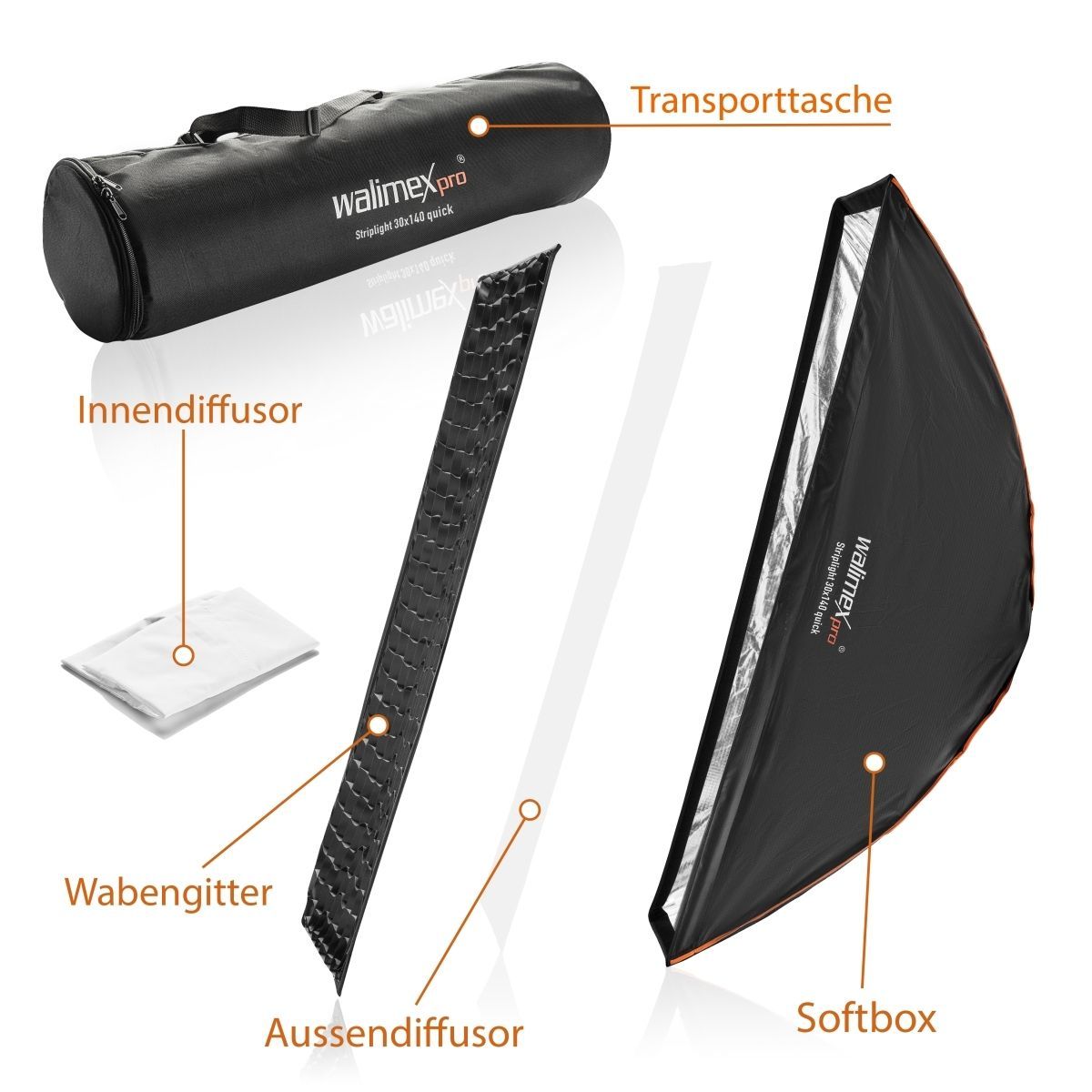 Walimex pro Studio Line Striplight Softbox 140x30x60cm QA Grid Aurora Bowens