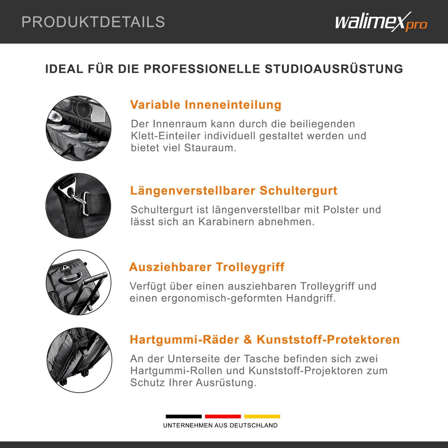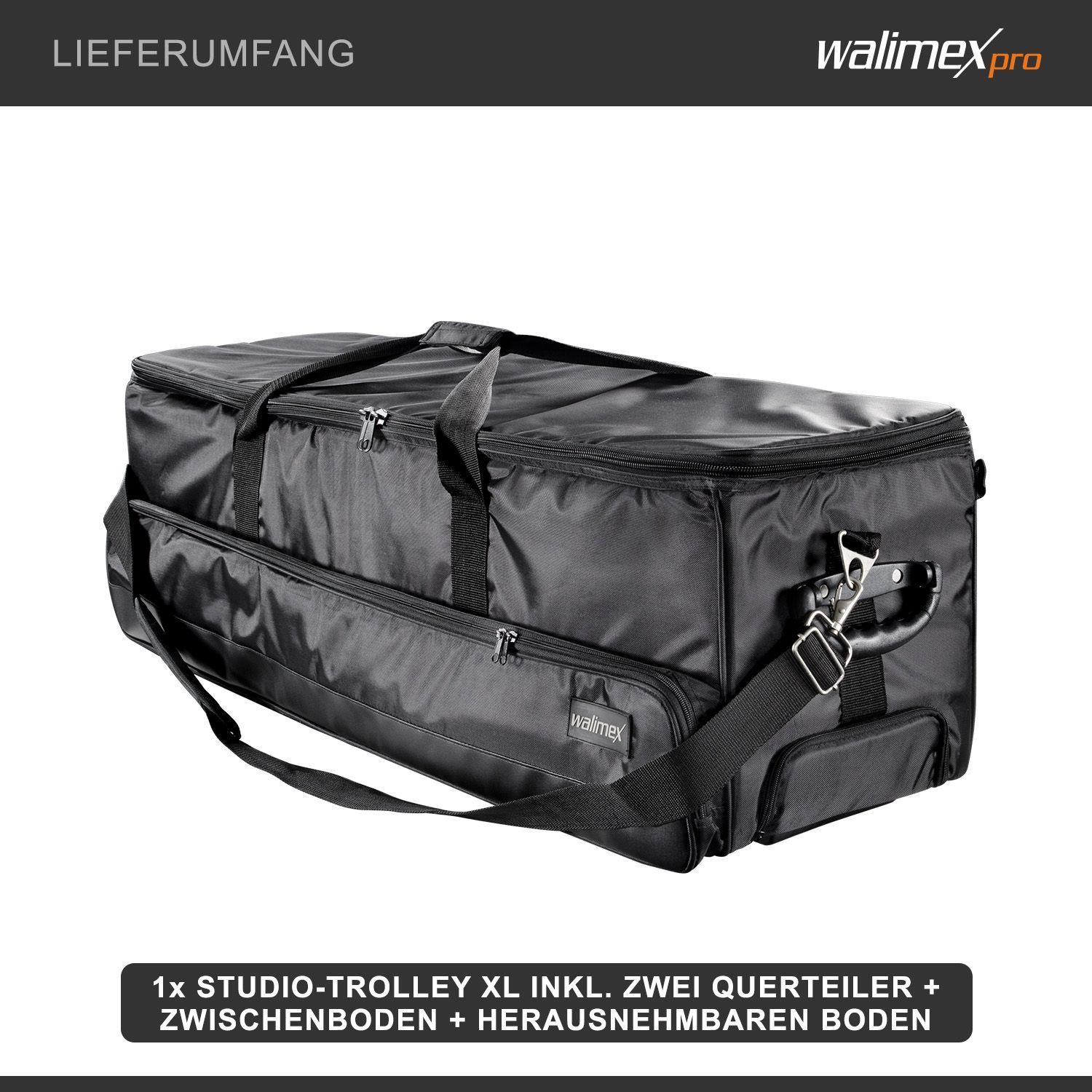 Walimex pro Studio Trolley XL Schwarz 1027x379x324mm Griff Ausziehbar Gurt Räder