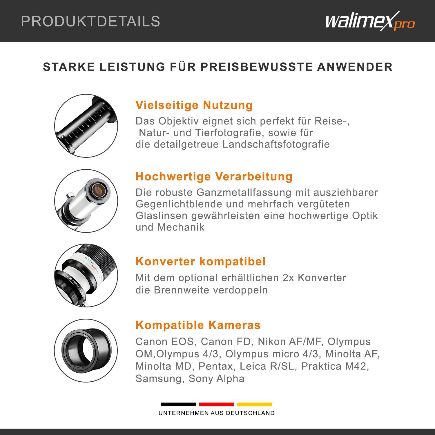 Walimex pro Teleobjektiv 650-1300mm 1:8-16 CSC Pentax K Vollformat & APS-C