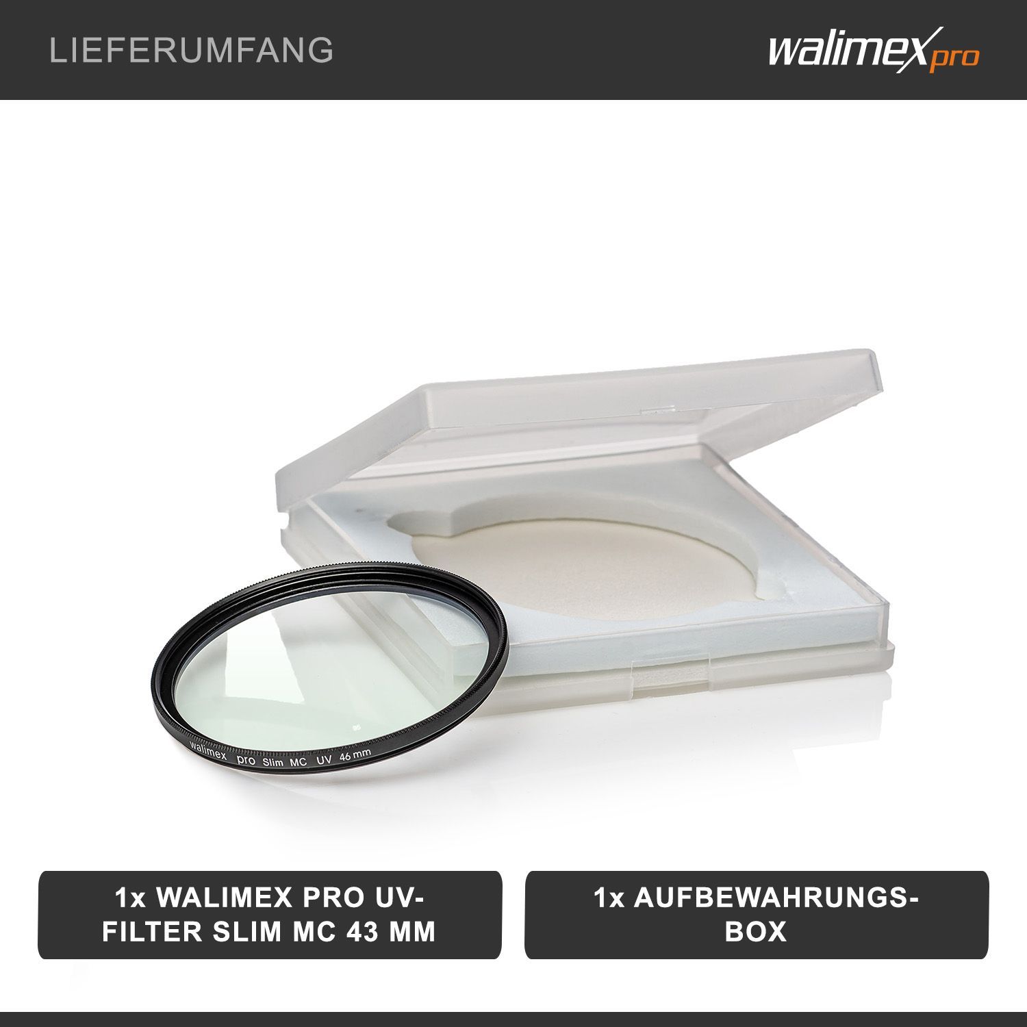 Walimex pro UV-Filter slim MC 43mm Mehrschichtvergütung Metallfassung Schutz