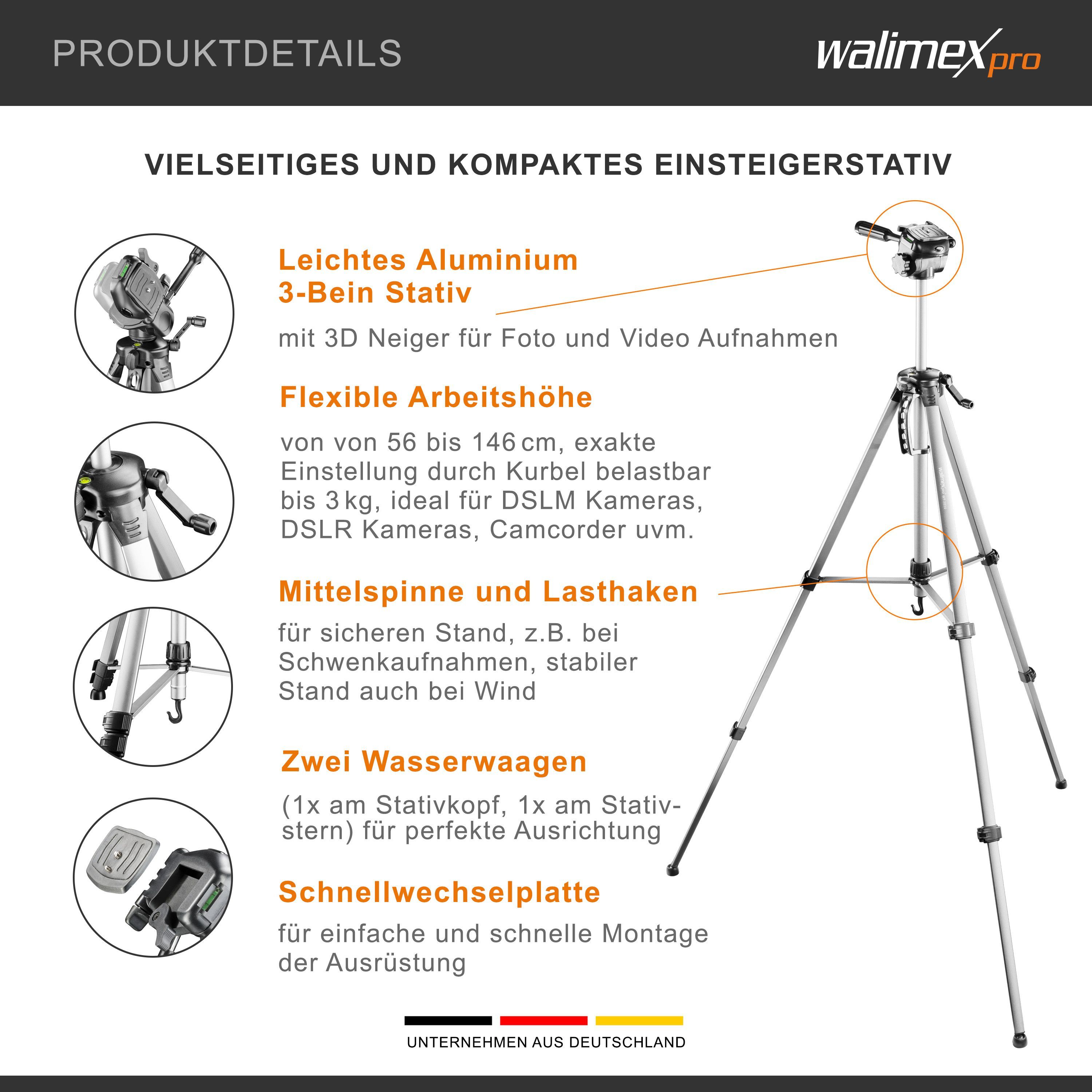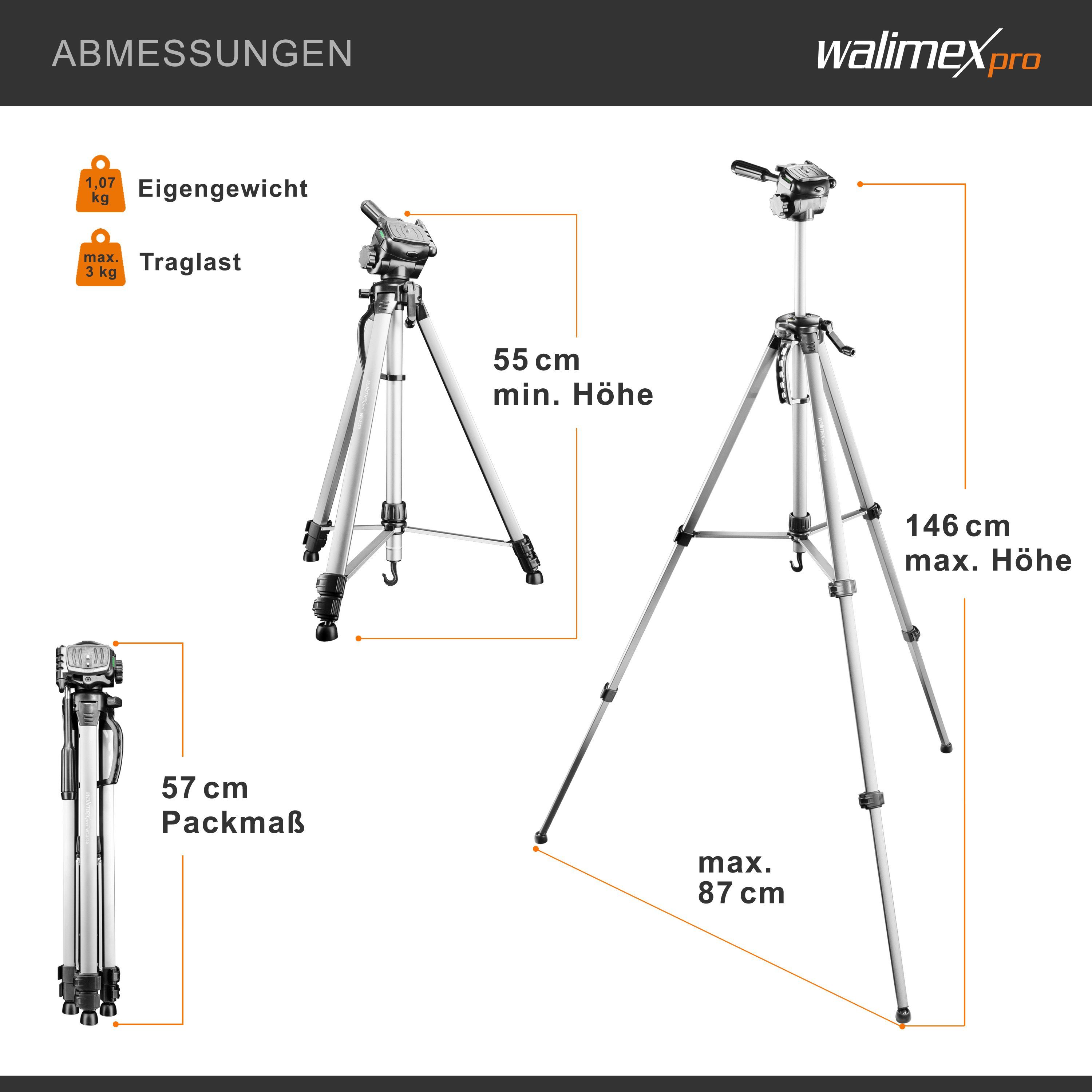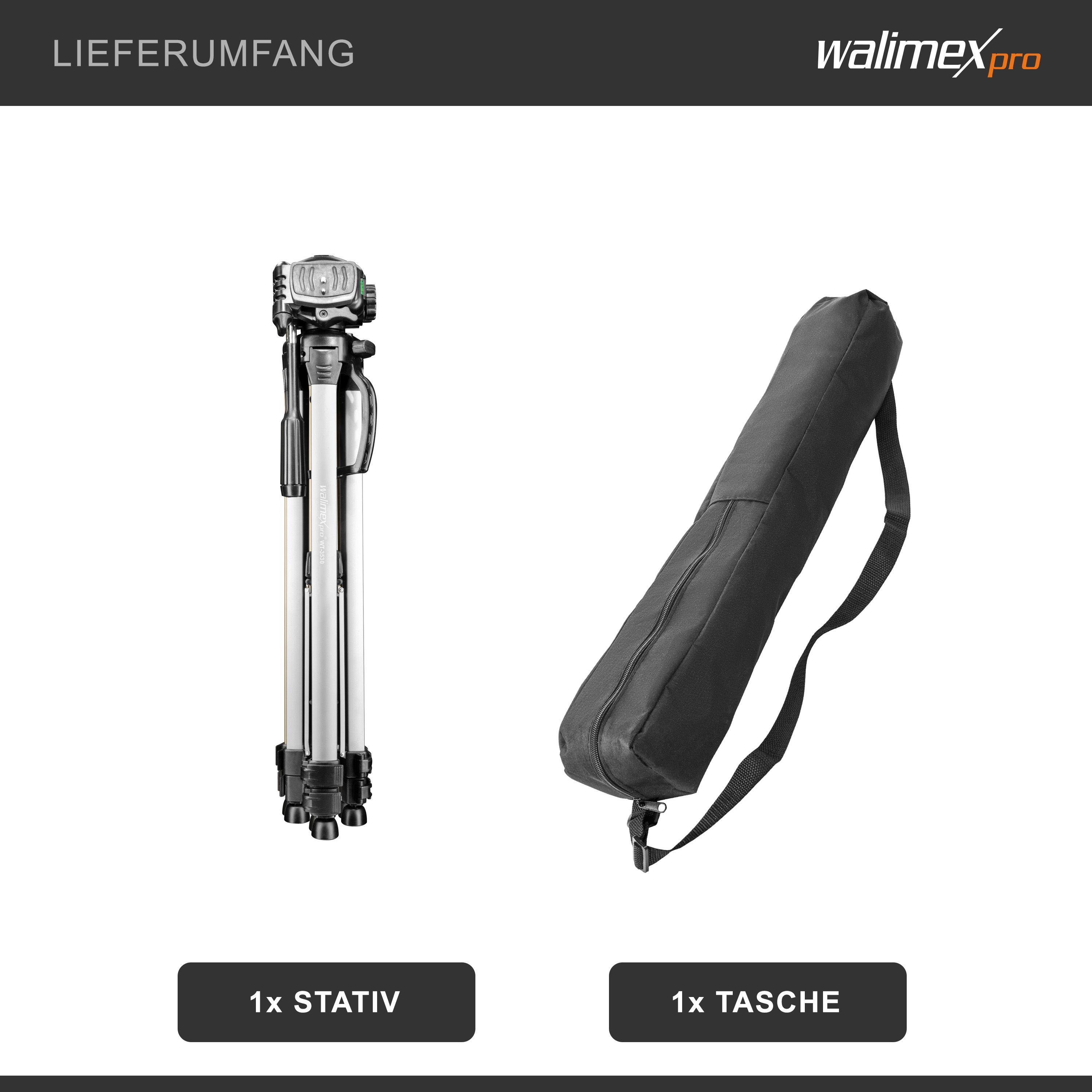 Walimex pro WT-3530 Basic-Stativ 146cm silberfarben Fotostativ Kamera Dreibein