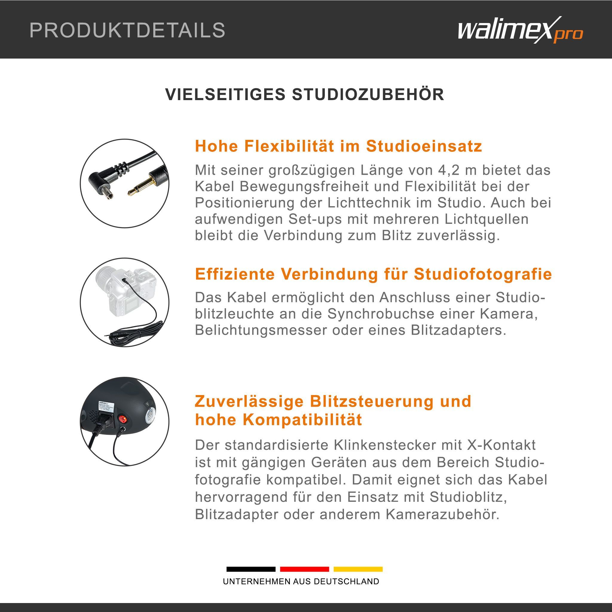 Walimex Synchrokabel 17x8x4200mm Klinkenstecker 3,5mm X-Kontakt Blitzkabel