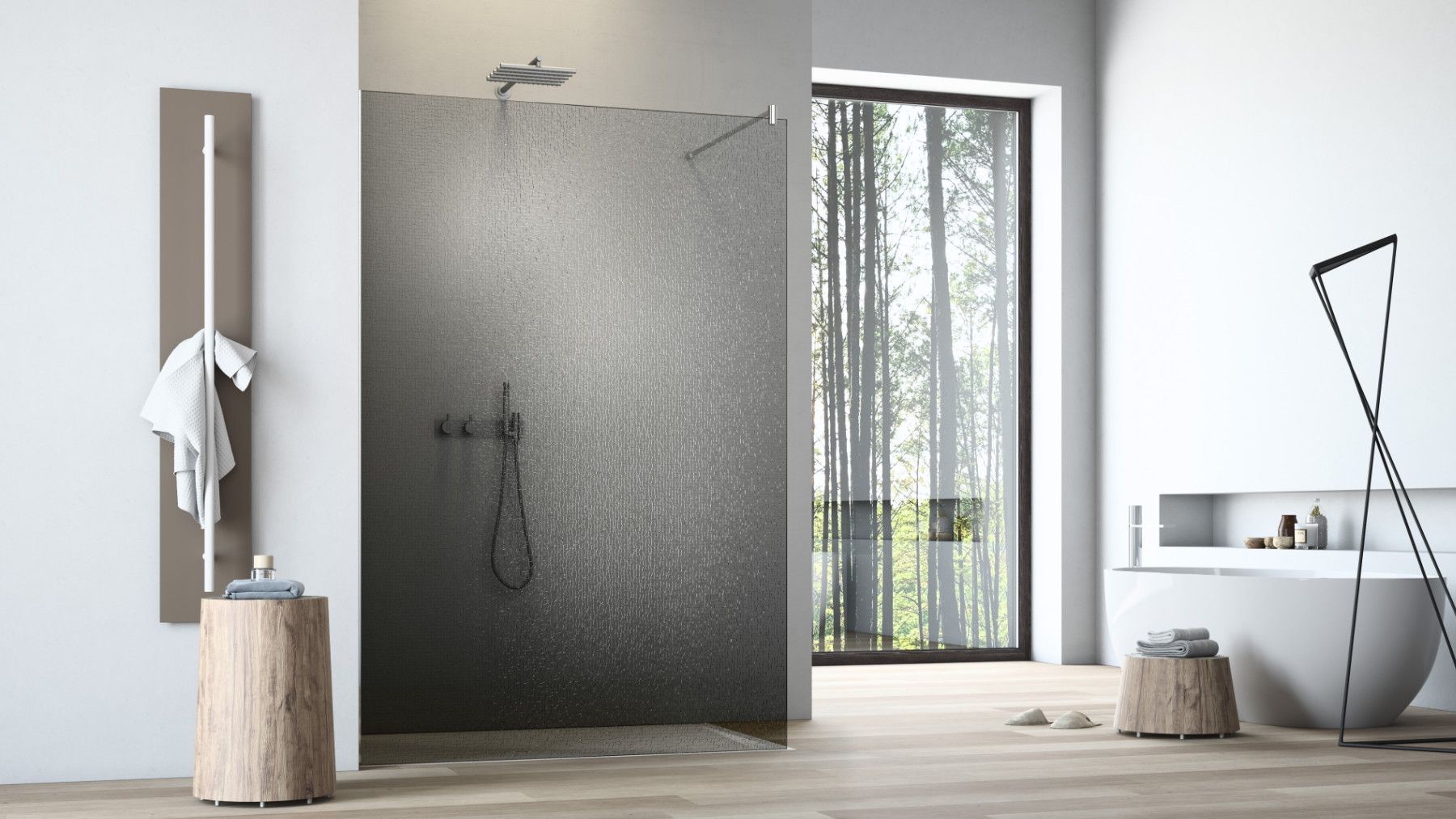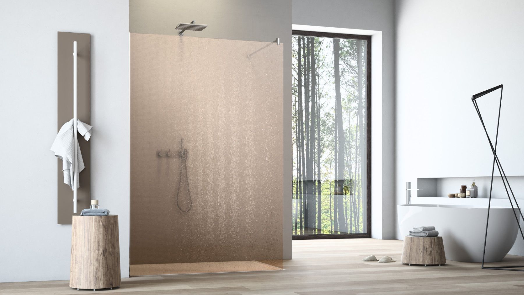 Der neue Trend im Dusch-Bereich! Walk In mit Crash-Glas Die Einscheiben-Sicherheitsglas Duschwand besteht aus 12,8 mm dickem VSG-Sicherheitsglas (4+4,8+4 mm) und präsentiert ein einzigartiges Design mit der Optik von geprungenem Glas. Die Duschwand verfügt über ein hochwertiges, Aluminiumprofil, das
