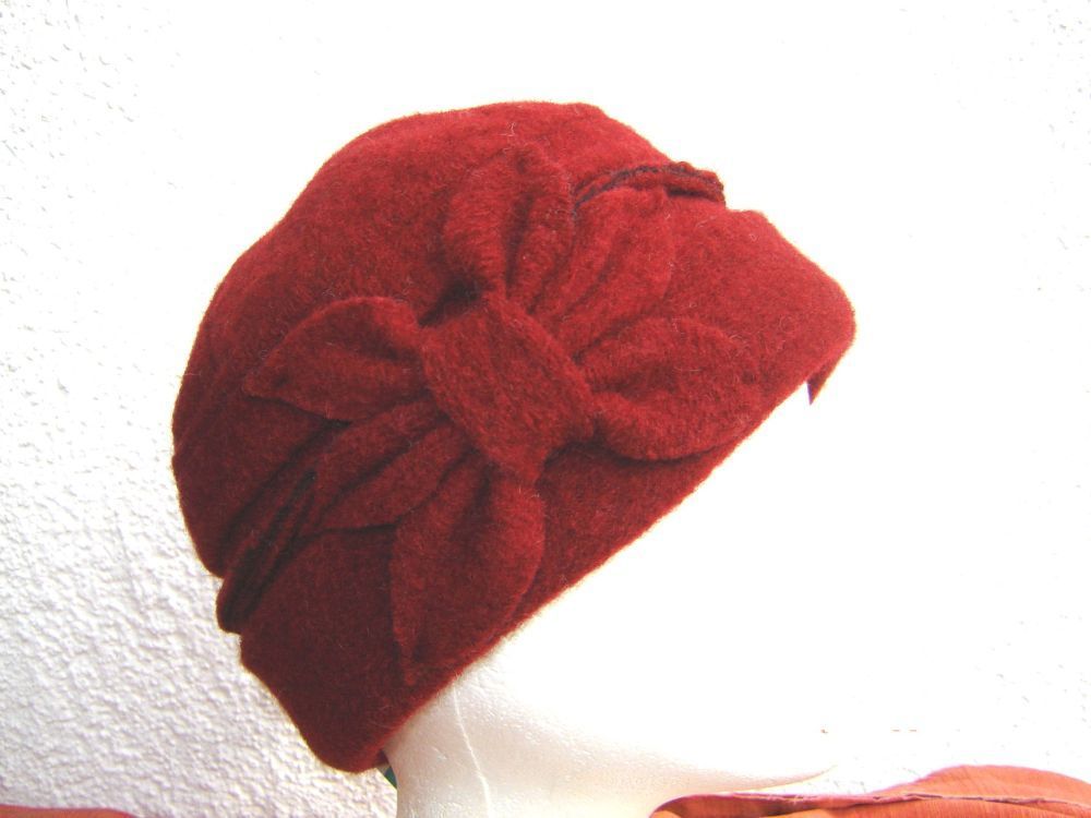 . Walkhut kuschlig warm Walkmütze gerade Form, sehr schmeichelhaft wunderschön dekoriert mit großer Walkschleife Walk weiche Qualität aus 75% Wolle und 25% Polyester mit weichem Fleecefutter , 100% Polyester damit nichts kratzt problemlose Handwäsche in Farbe kirschrot Größen passend für 56 , 57 ode