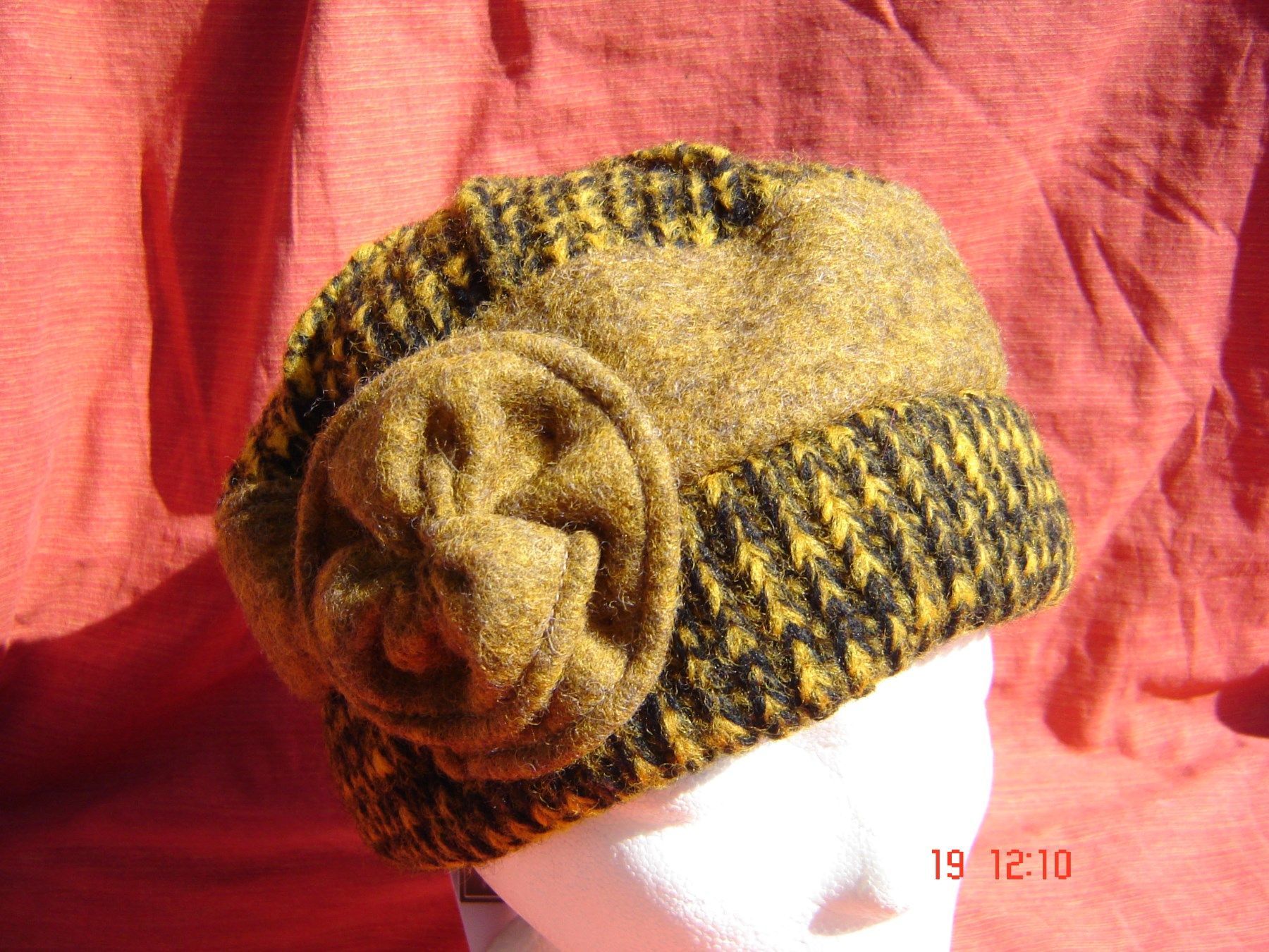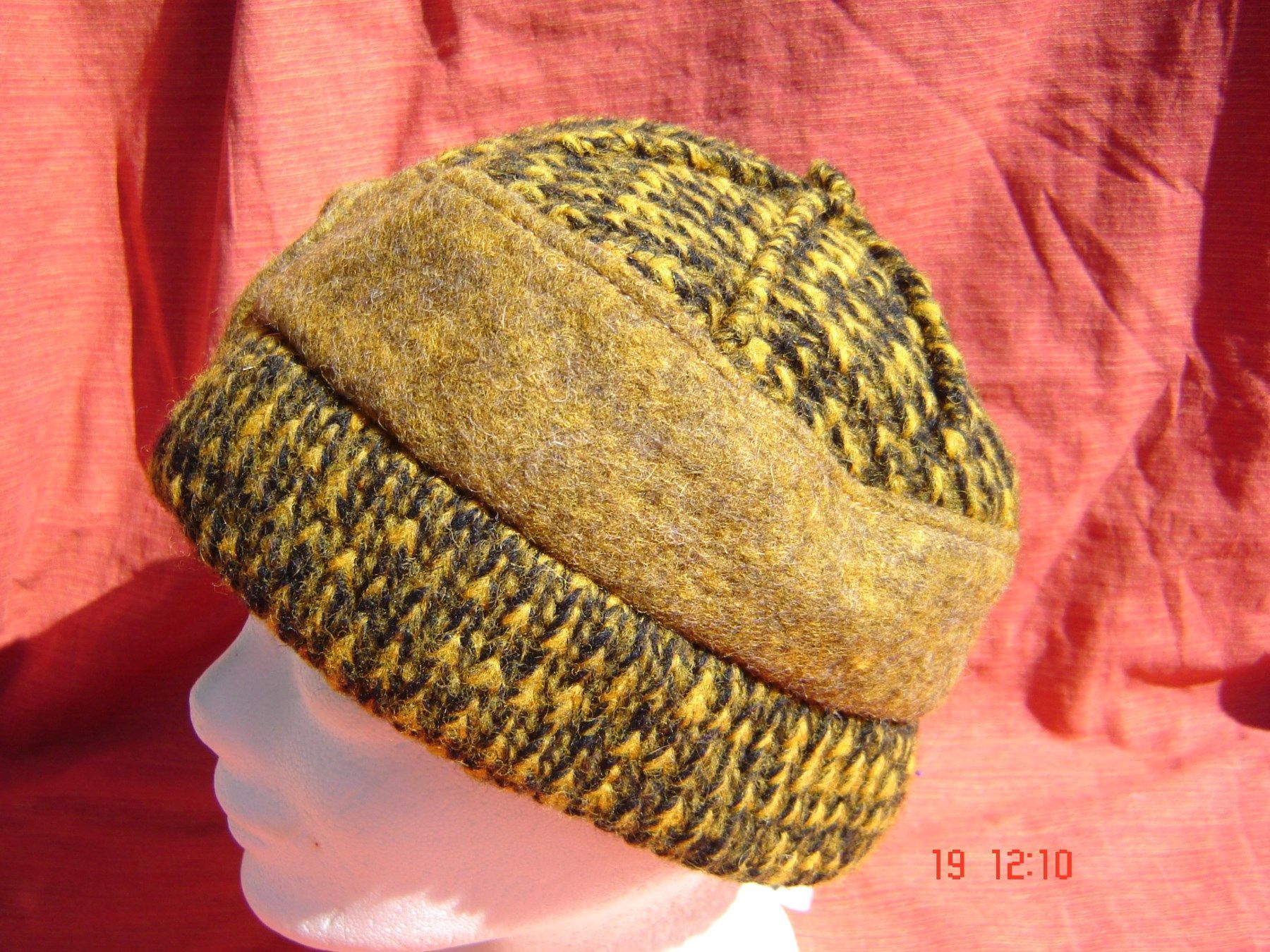 Walkmütze curry schwarz Walk u Strick kuschlig warme Wintermütze D3