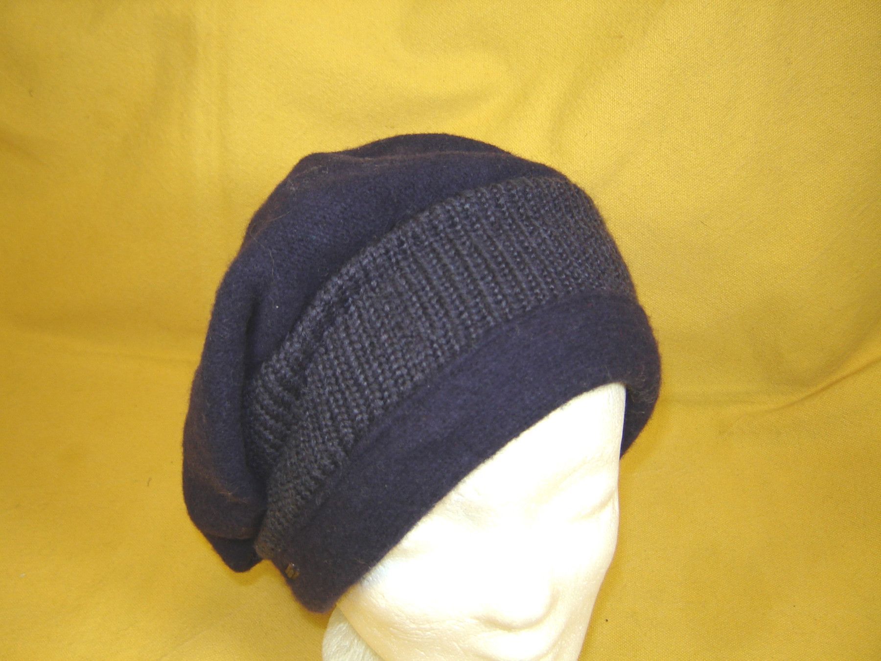 . kuschlig warme Walkmütze Walkmütze in Long Baskenmützen Form , sehr dekorativ die Strick Auflage entweder nach hinten tragen , oder ganz über die Ohren sehr weiche Qualität aus 100% Wolle problemlose Handwäsche in Farbe dunkel lila Größe passend für 55 bis 57 cm Kopfumfang , sollten Sie eine ander