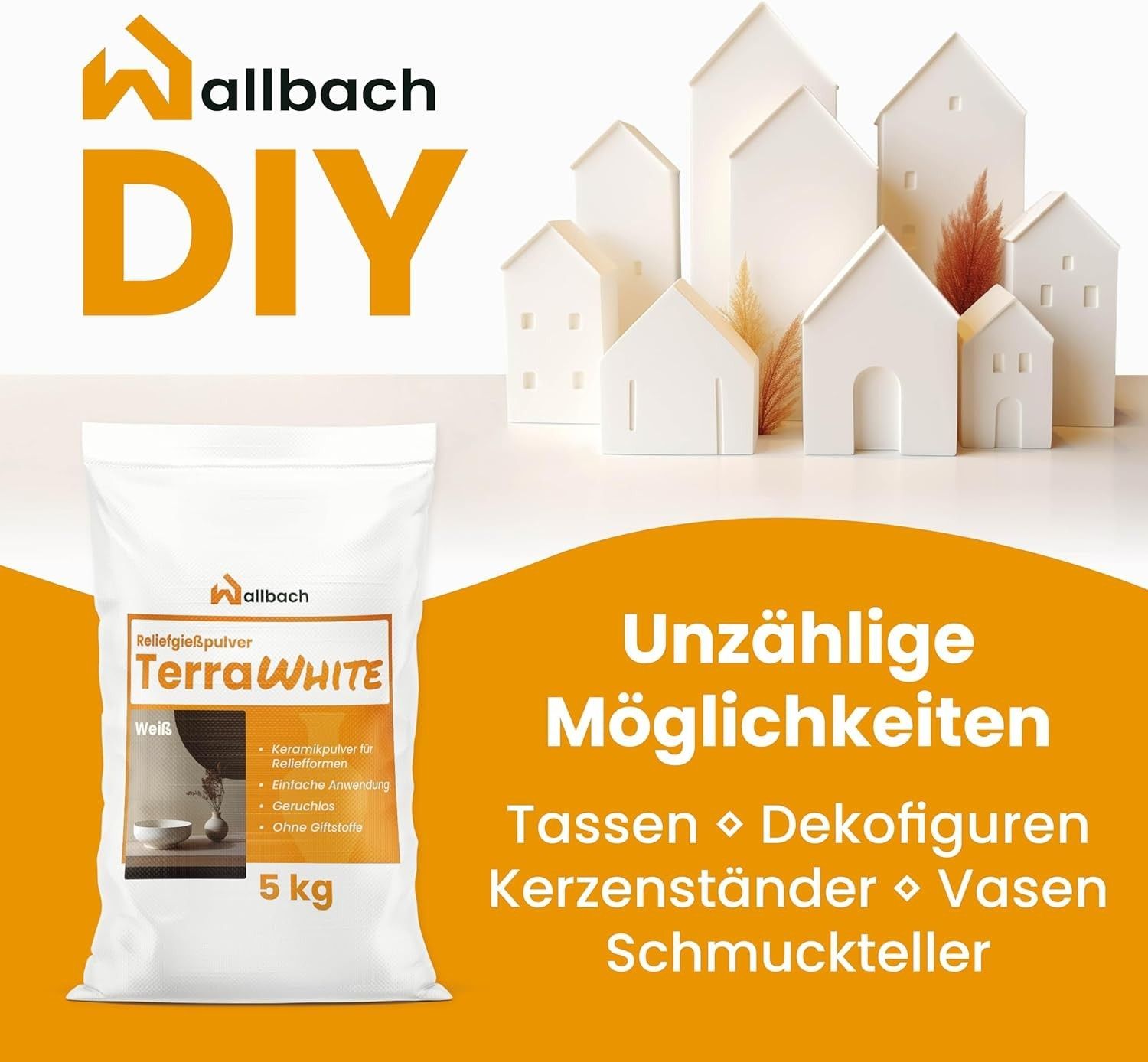 Wallbach® TerraWhite Premium Reliefgießpulver 5kg Weiß für Präzisionsguss
