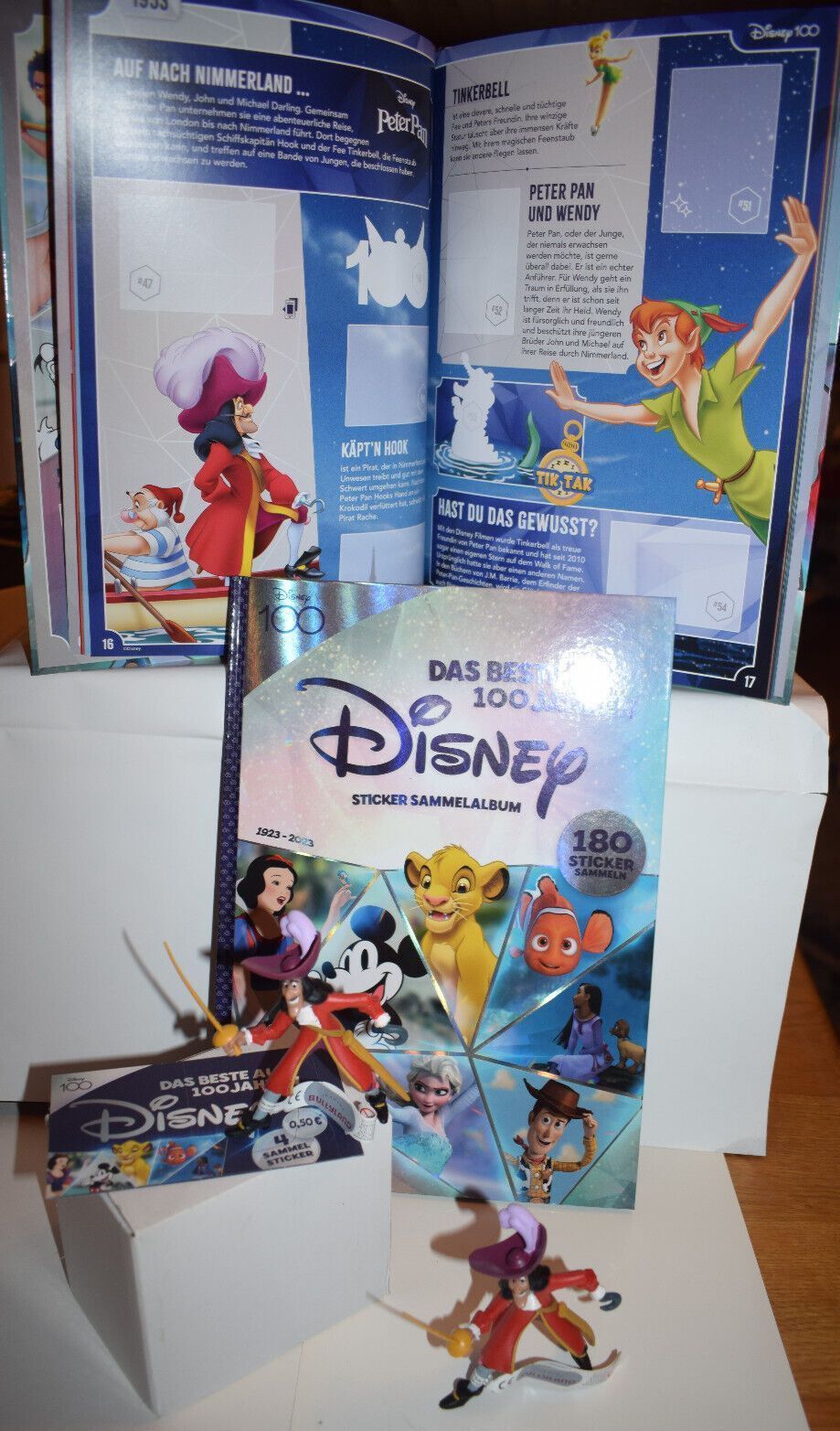 Walt Disney Das Beste aus 100 Jahre Stickeralbum für 180 Sticker, vollständig beklebtes Album plus 1 Stck. Käpten Hook (12 x 6 cm) Bullyland Figur Album beschreibt die großen Klassiker von Aschenputtel, Bambi, Dschunglbuch, Dumbo, König der Löwen, Zoomania, Hook, Cars, Winnie Puuh, Monster AG, Vaian