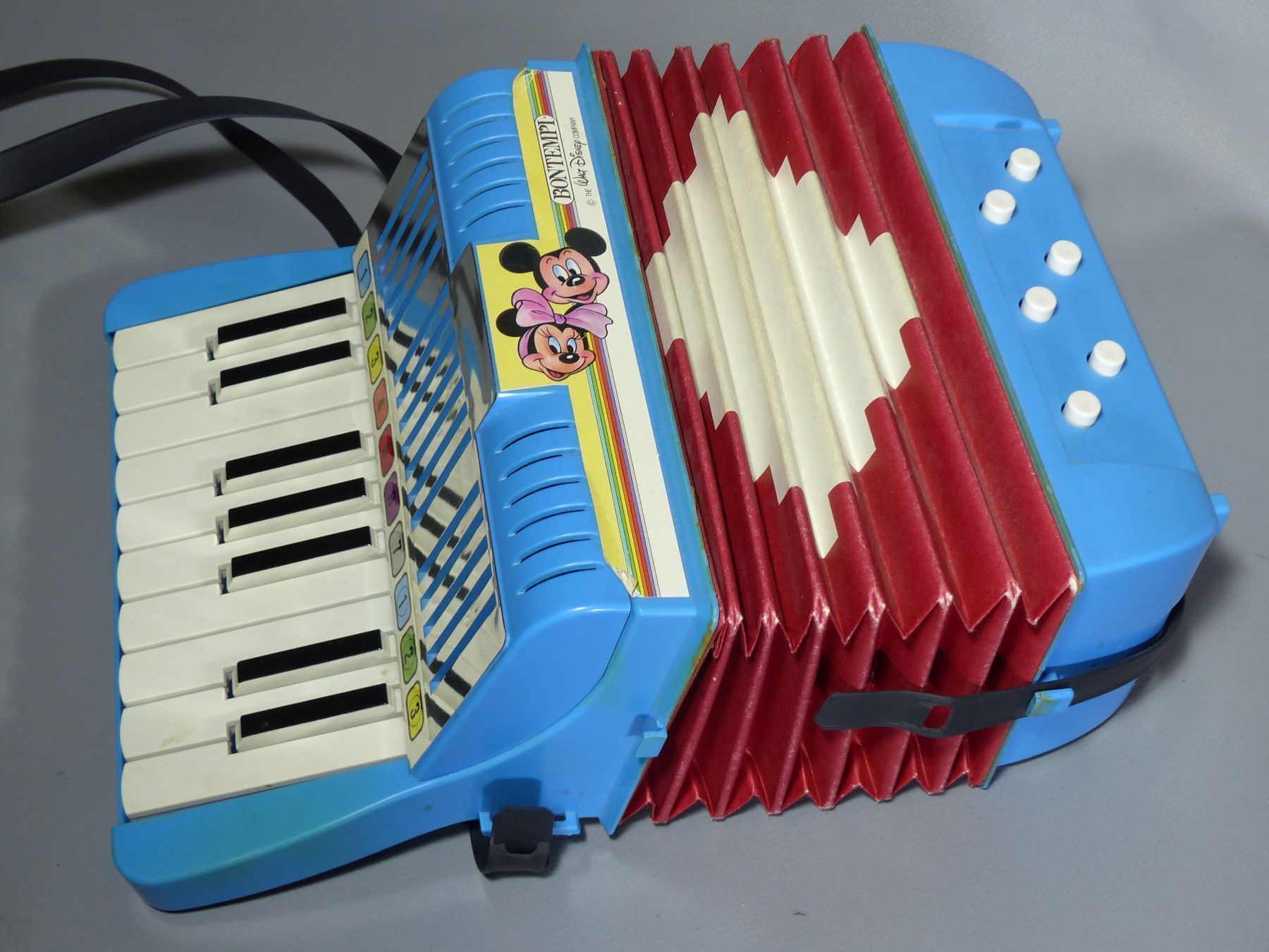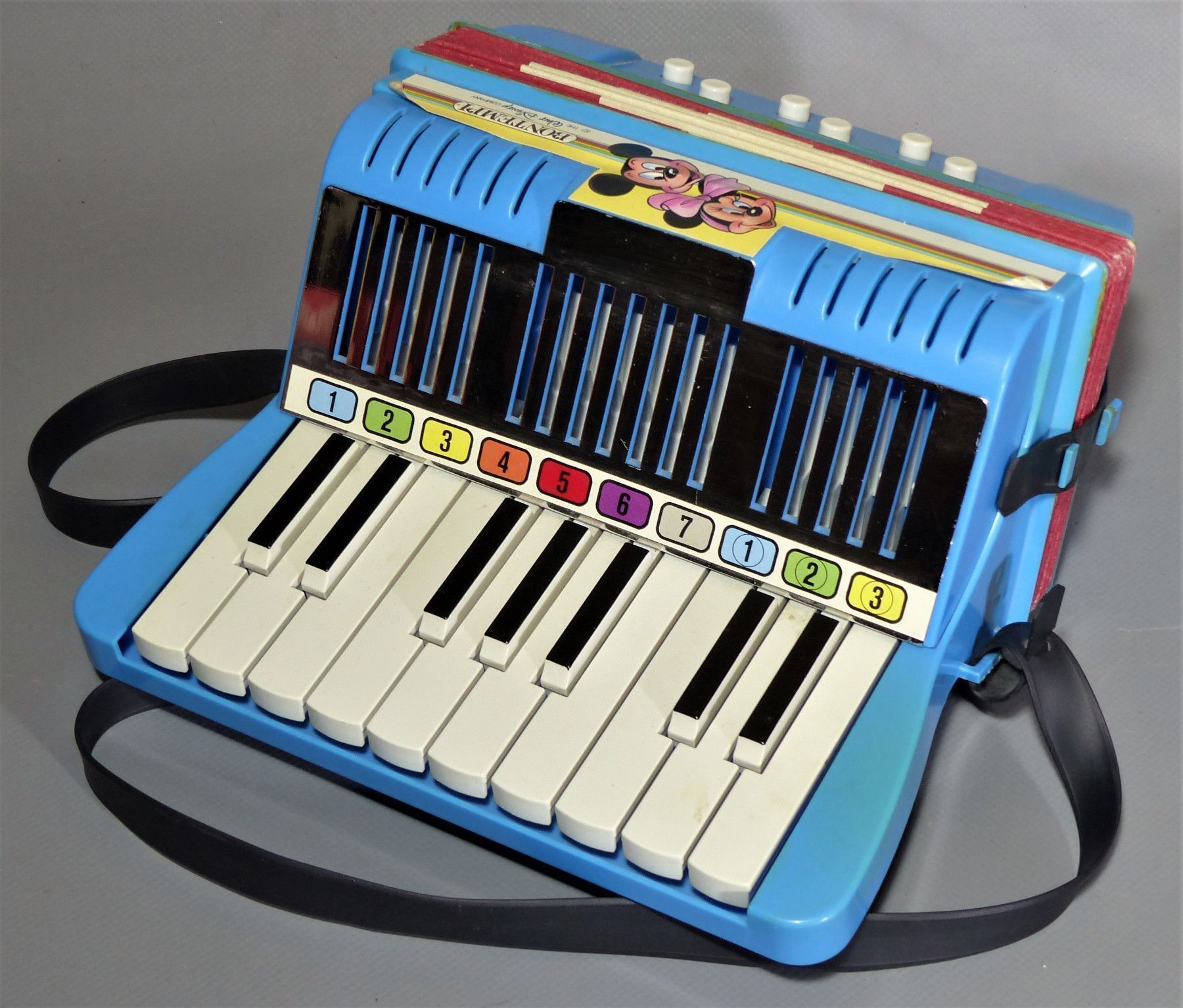 Walt Disney Mickey Mouse Comus Akkordeon Bontempi Spielzeug 70er Jahre Disneyana