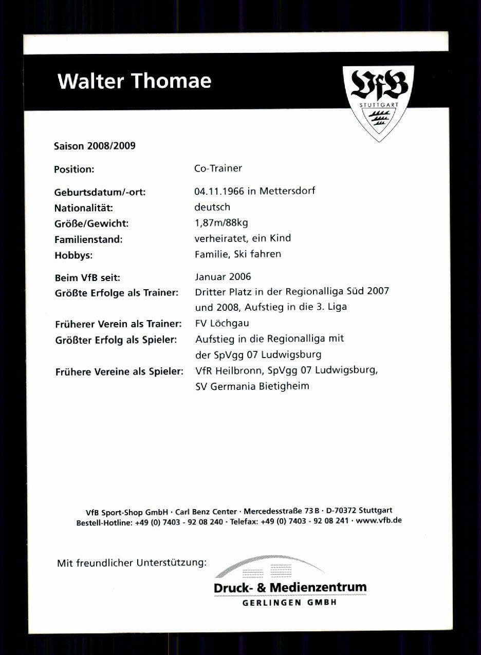 Walter Thomae Autogrammkarte VfB Stuttgart 2008-09 Amateure Original