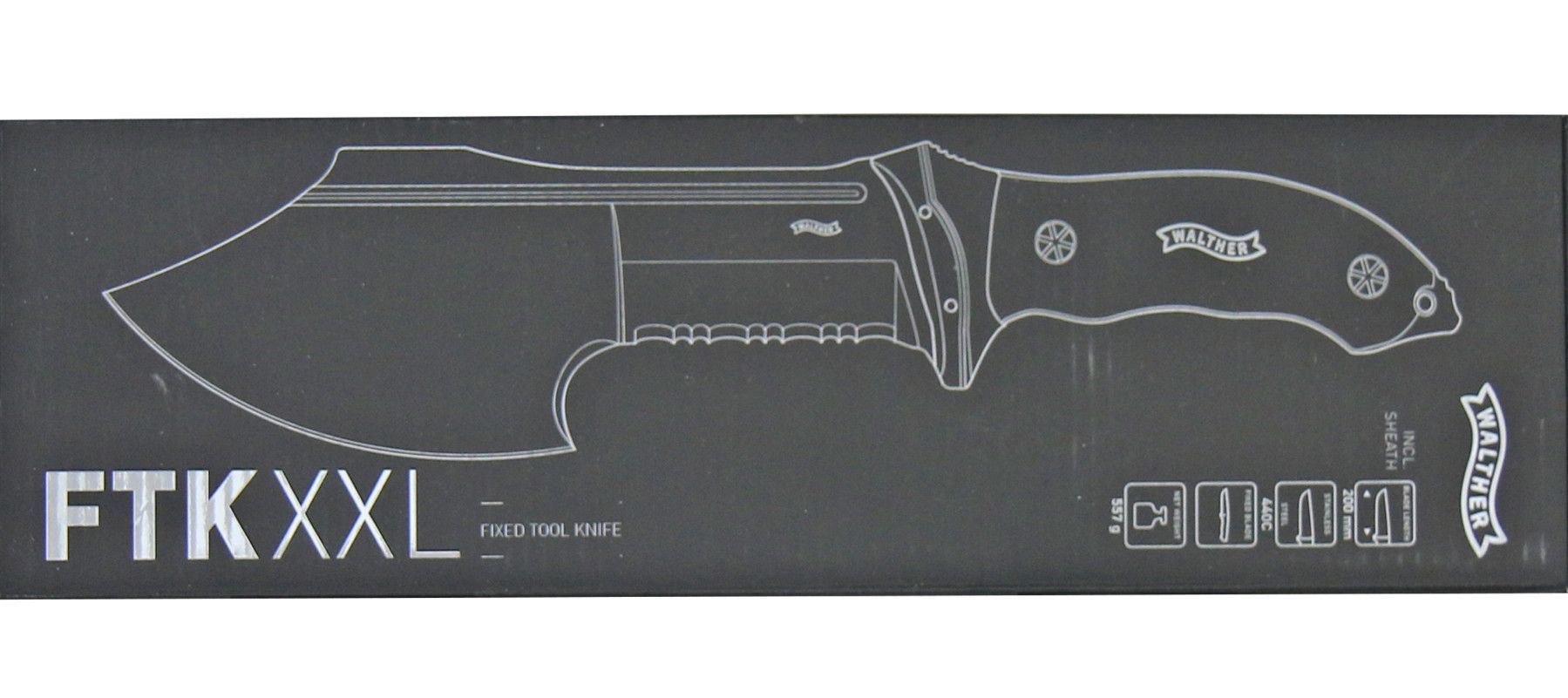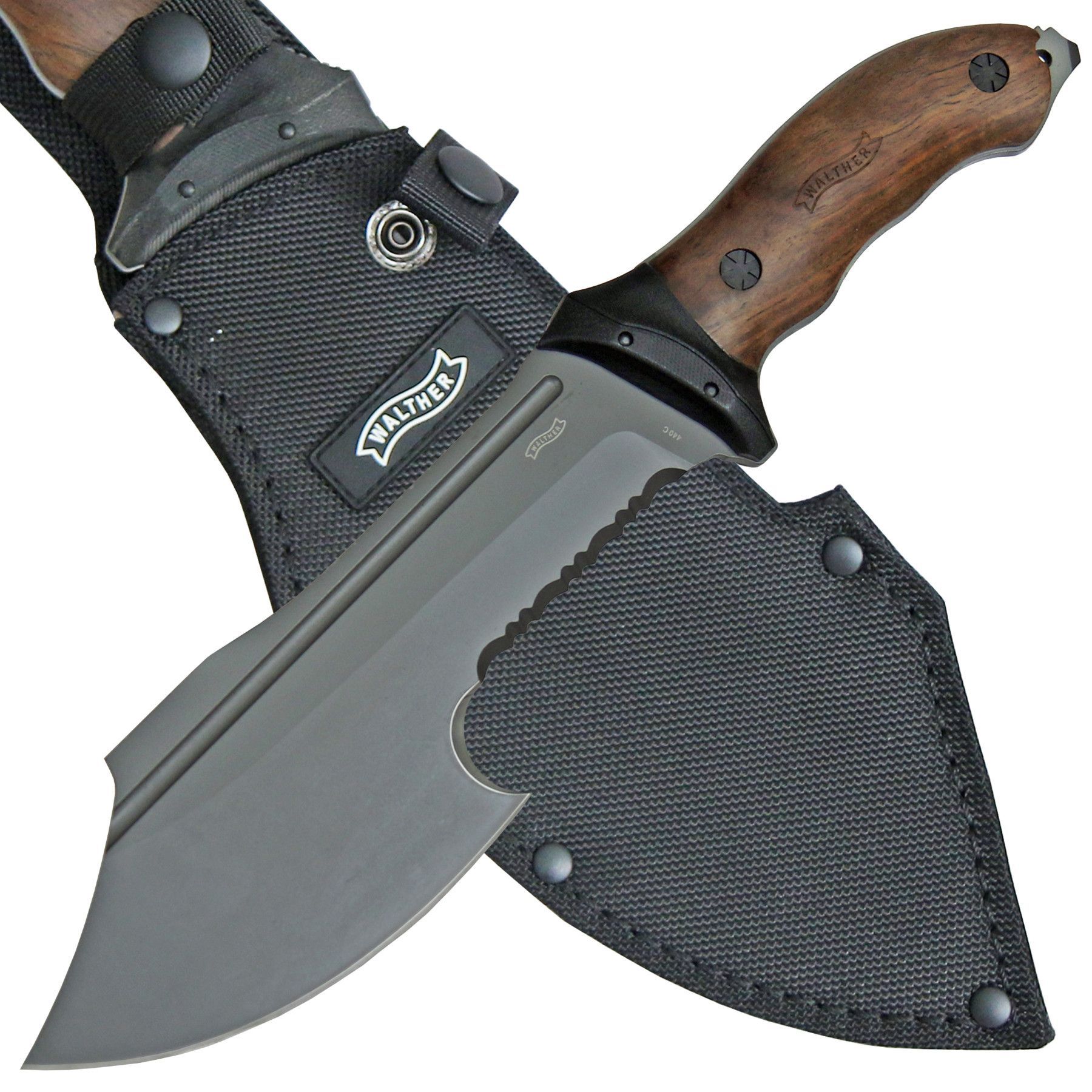 Walther Outdoormesser "FTK XXL" partieller Wellenschliff G10/Walnussholz Scheide