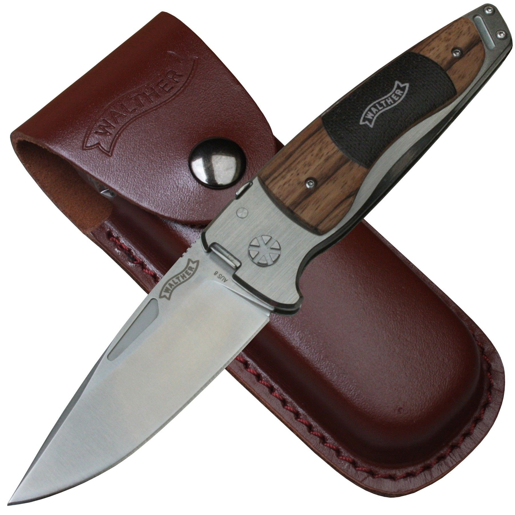 Walther Taschenmesser, TFW 1, Zebraholz Schalen, inkl. Lederetui