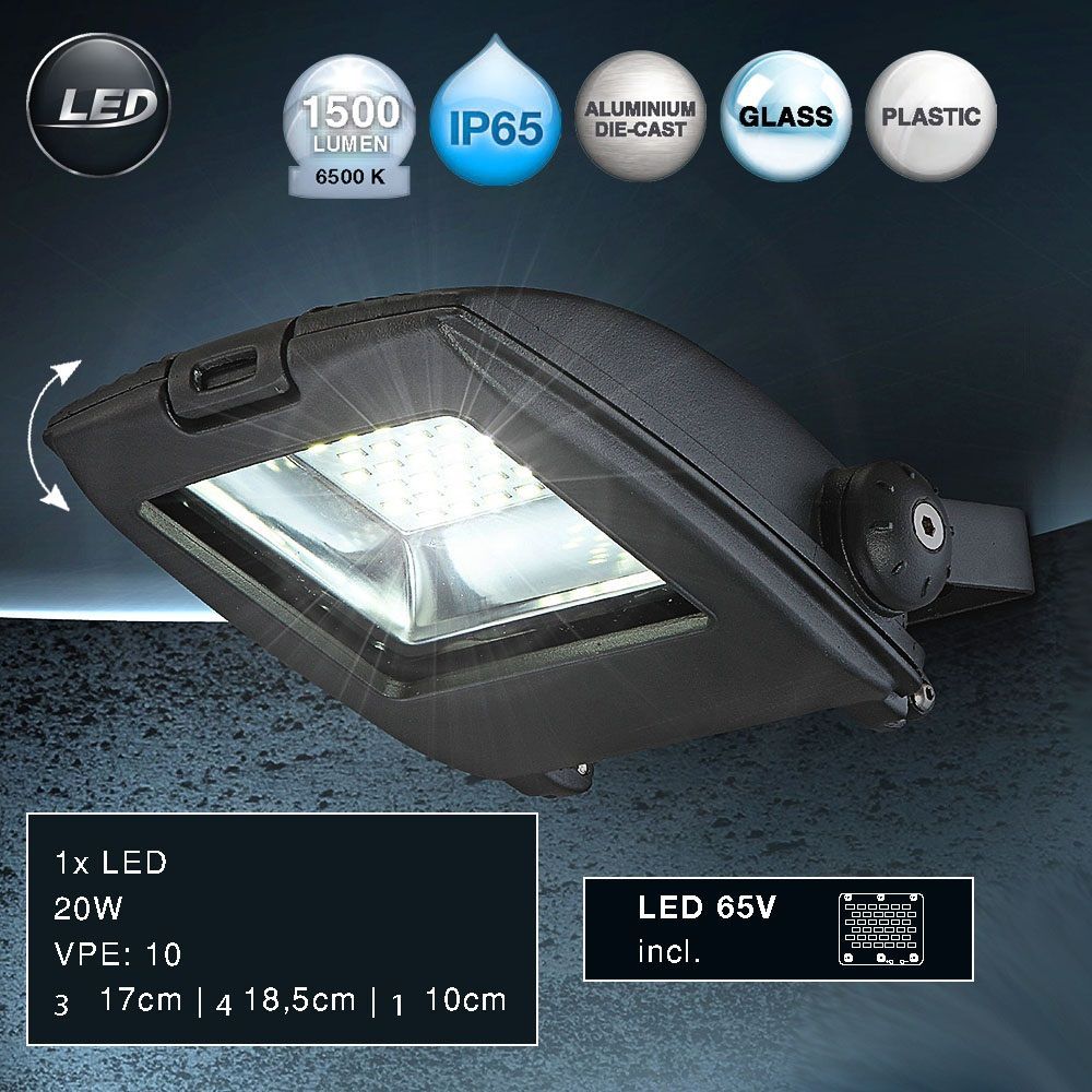 Wand Strahler AUSSEN Ø200mm | LED | Schwarz | Alu | Fluter Flutlicht Aussenlampe Aus