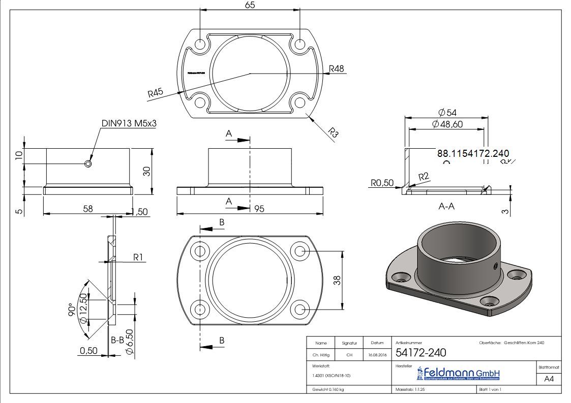 Wand- und Bodenanker für Rohr 48,3 mm | V2A