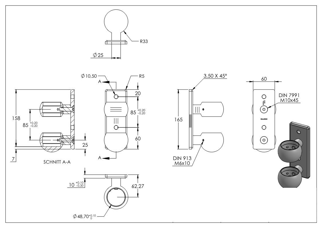 Wandbefestigung für Geländerpfosten Ø 48,3 mm | V2A