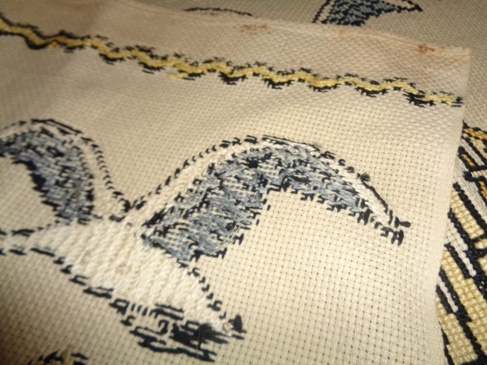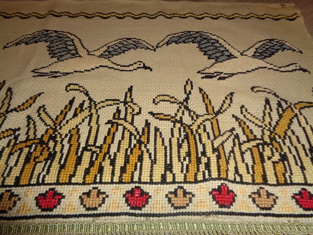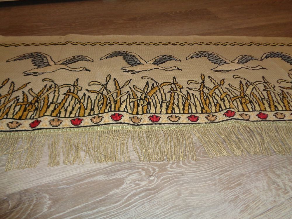 Wandbehang vorhang mit aufwendiger Stickerei 150cm breit 43cm hoch, davon 7cm Fransen Handarbeit Der Vorhang war mit Reißzwecken befestigt, dadurch Rostflecke oben am Rand Da ich viele weitere Artikel im Angebot habe, schaut einfach mal durch. Vielleicht ist das passende noch dabei.Ich verschicke di