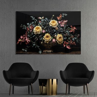 Wandbild Luxus Vase mit Blumen, Kunst Bild, Poster, Leinwand, Acrylglas