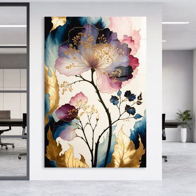 Wandbild Luxus Blumen mit Gold, Kunst Bild, Poster, Leinwand oder Acrylglas