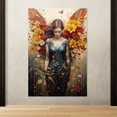 Flügel und Blumen Frau, Abstrakte Kunst, Wandbild Leinwand, Acrylglas oder Poster