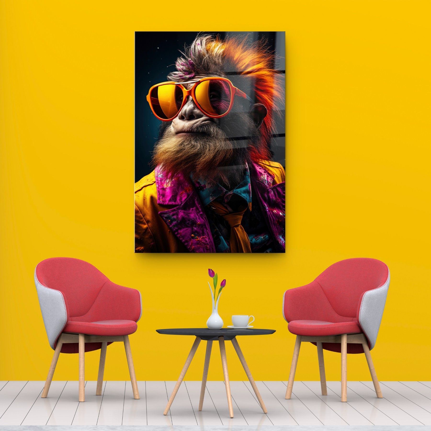 Wandbild Abstrakter Affe mit Brille Cool Pop Kunstdruck Acrylglas , Leinwan , Poster