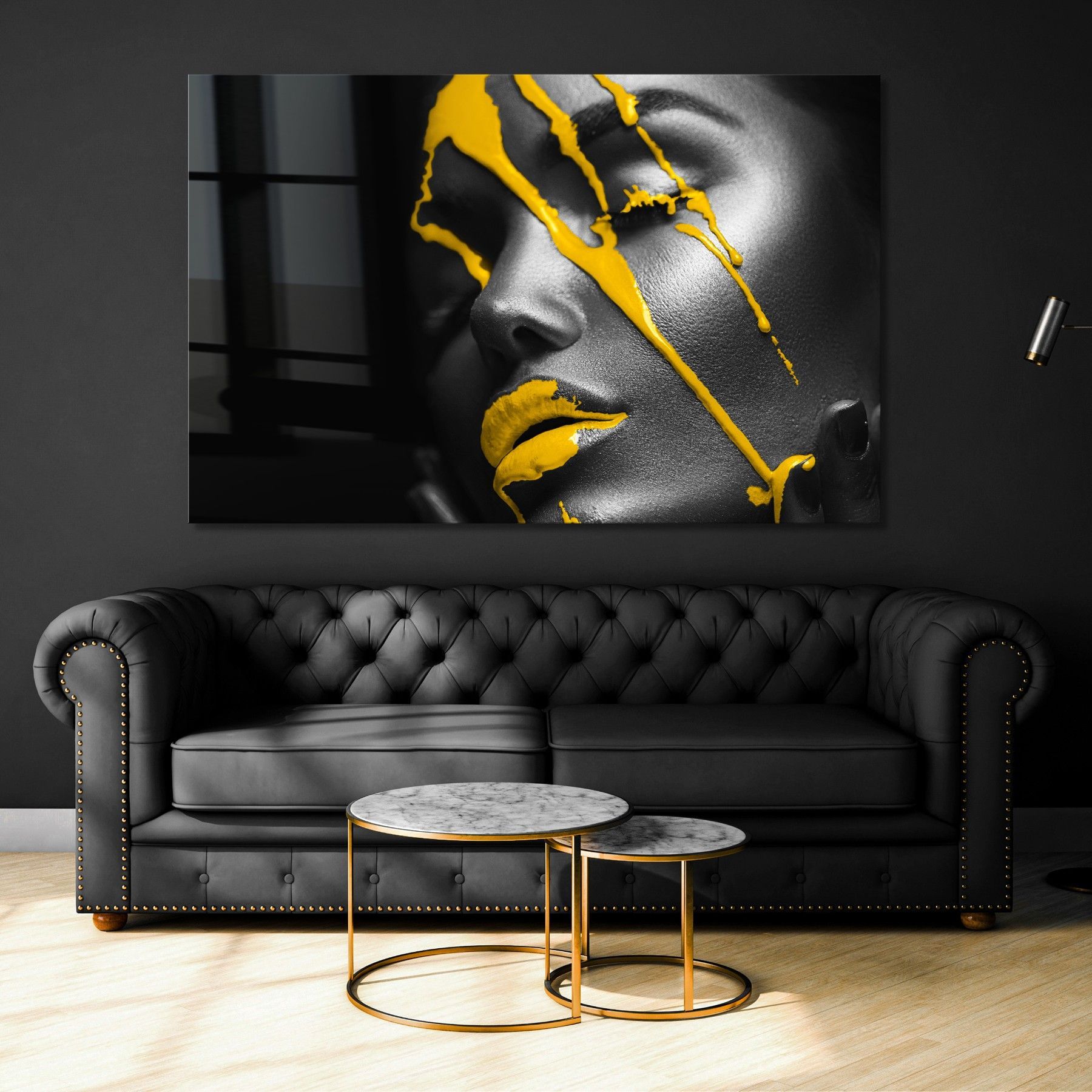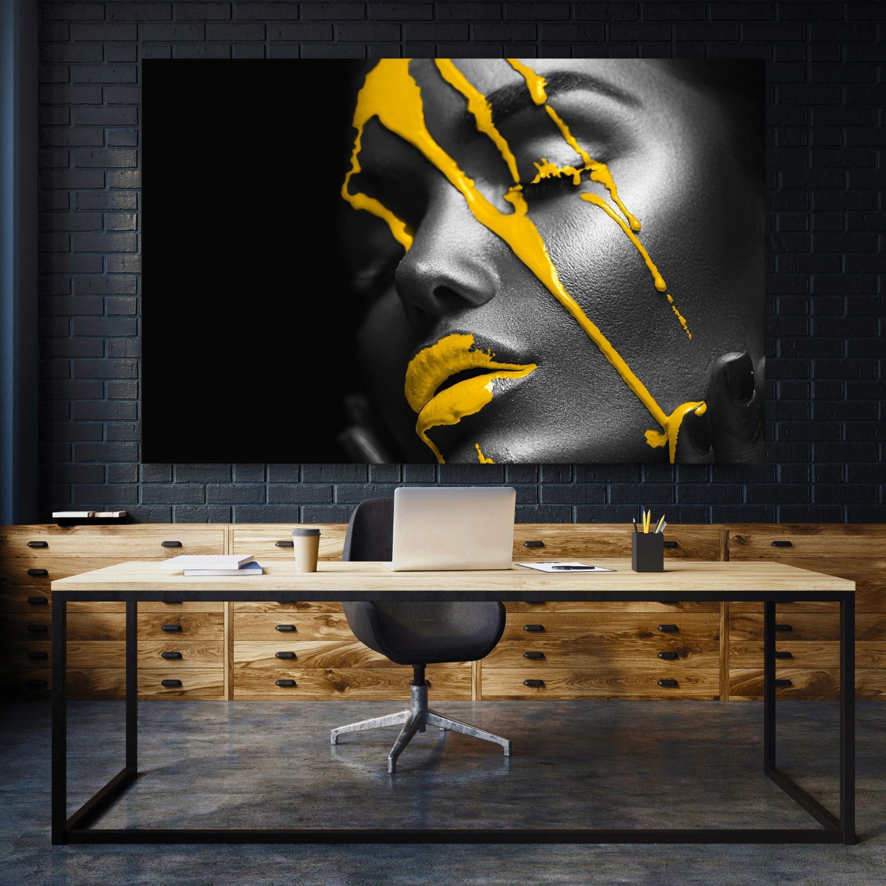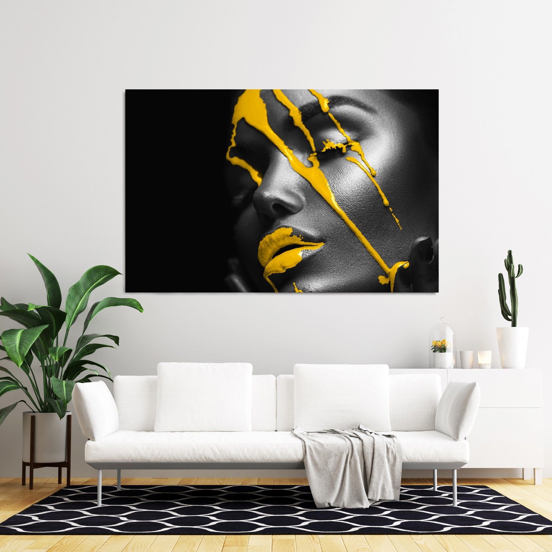 Wandbild Art Modern Frau mit Golden Lippen Kunst Leinwand , Acrylglas , Poster