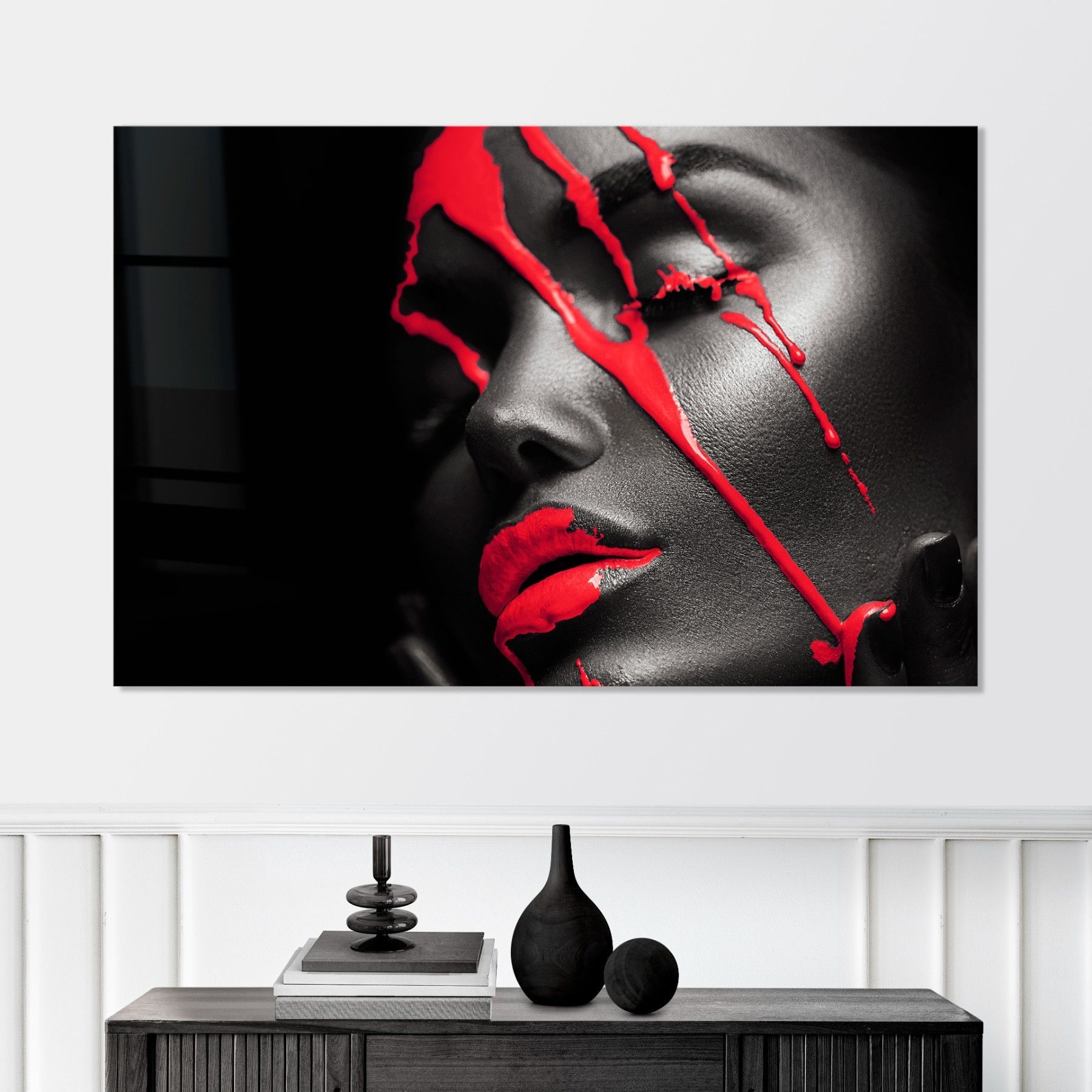 Wandbild Art Modern Frau mit roten Lippen Kunst Leinwand , Acrylglas , Poster