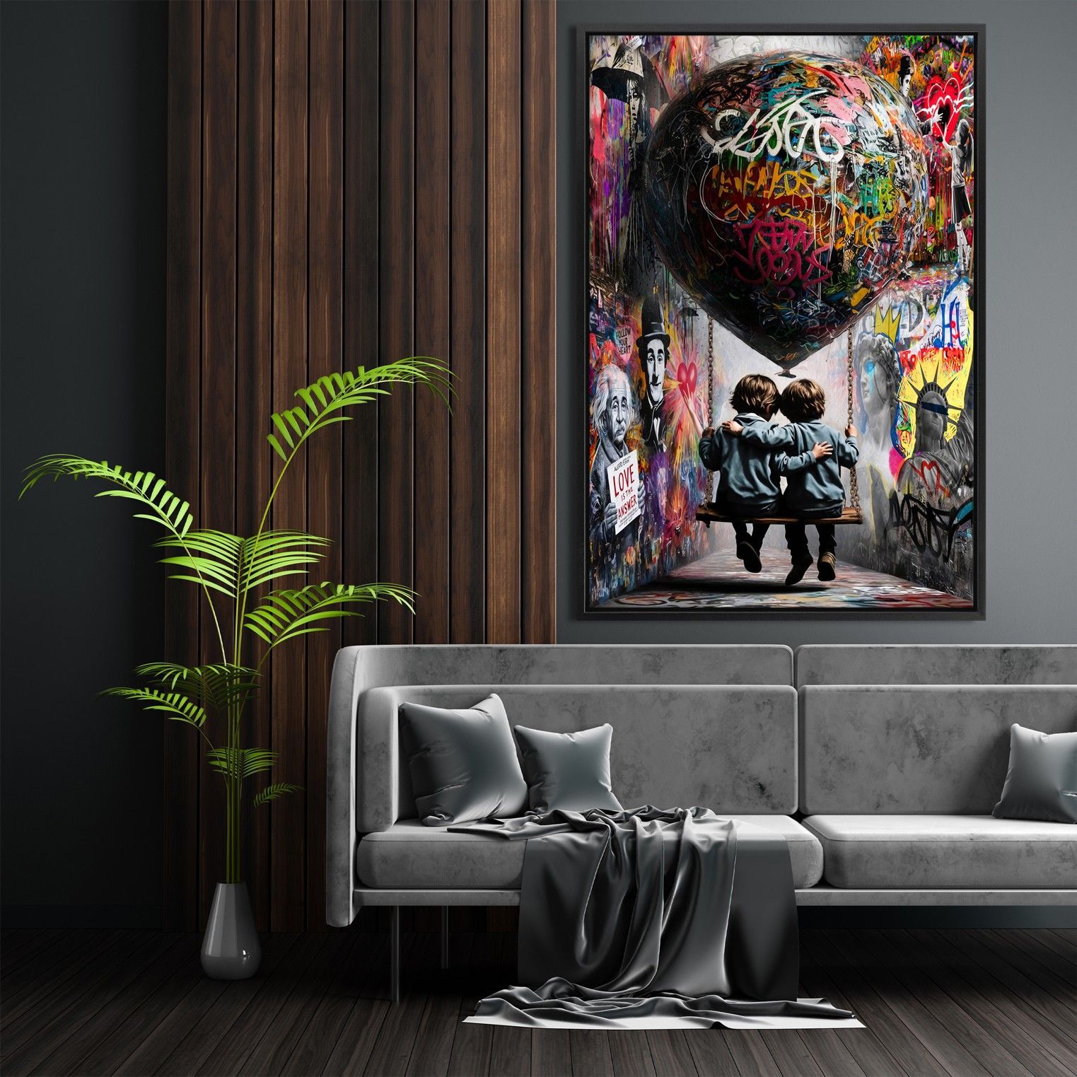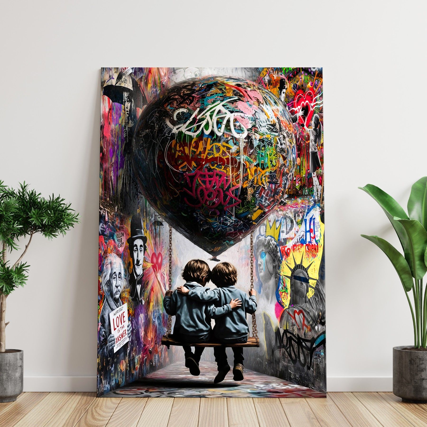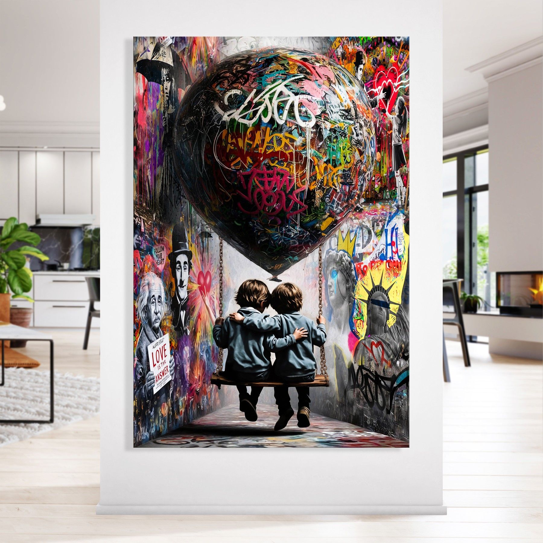 Wandbild, Banksy Kinder mit Ballon, Pop Art Kunst, Leinwand, Acrylglas, Poster r4