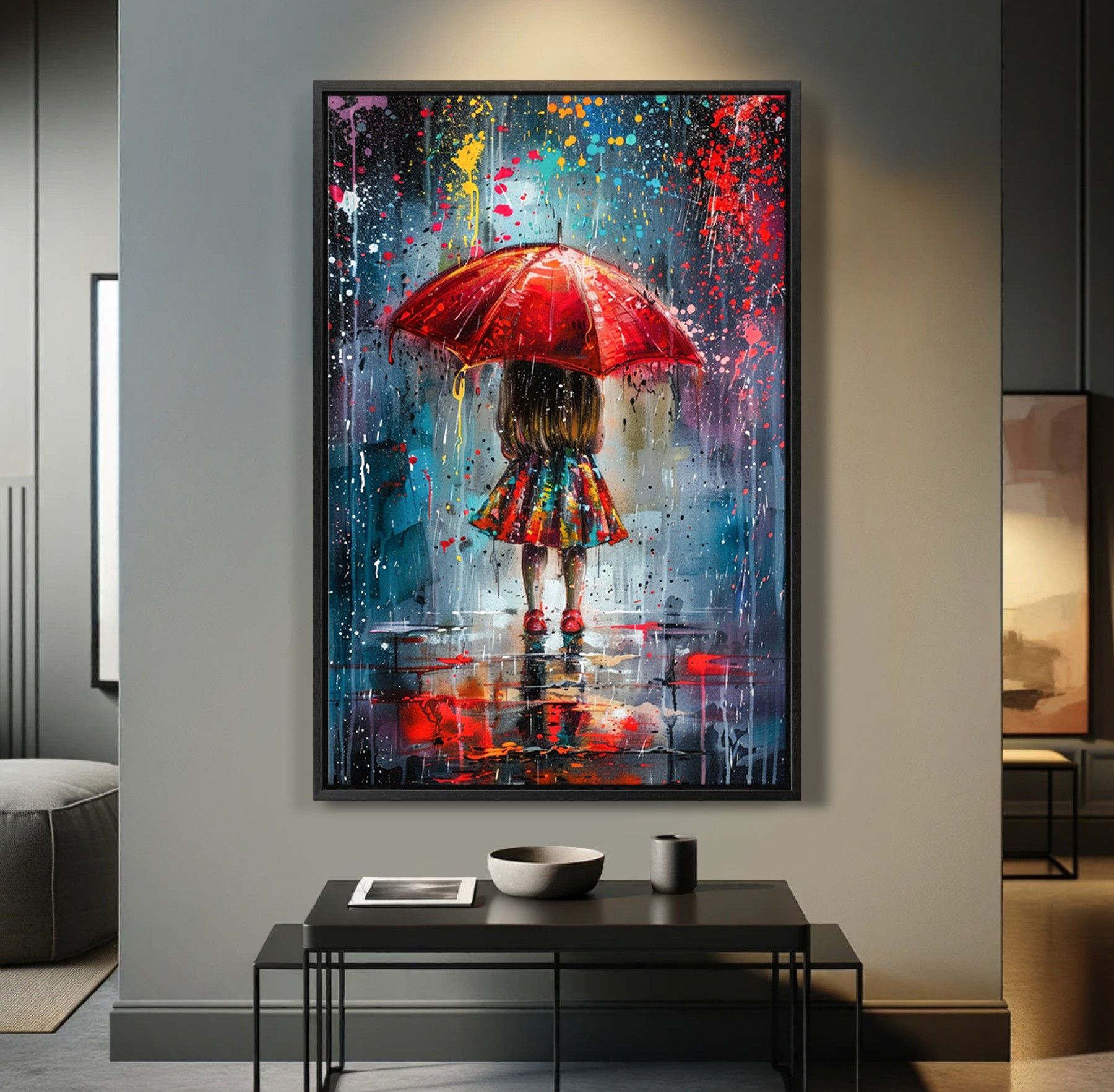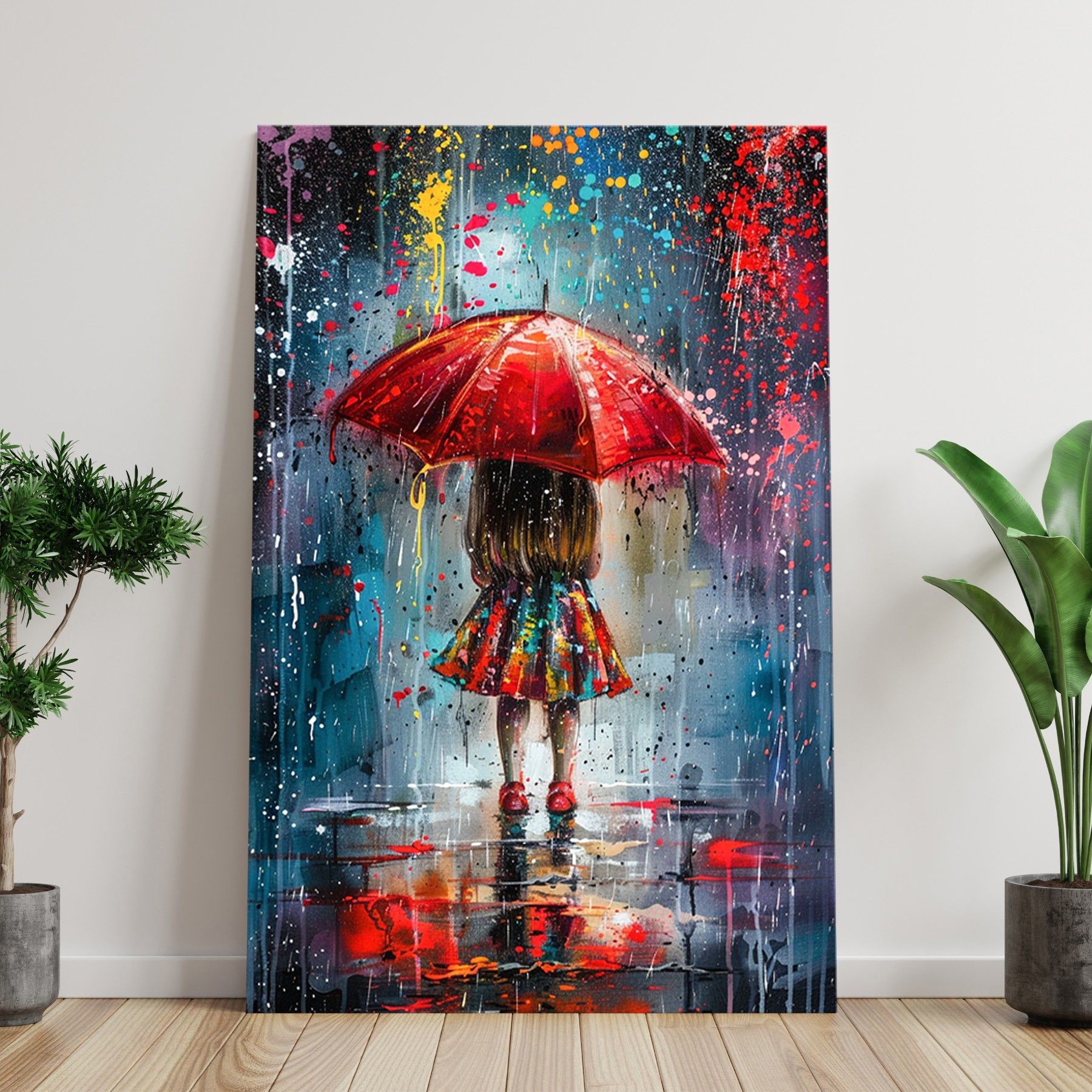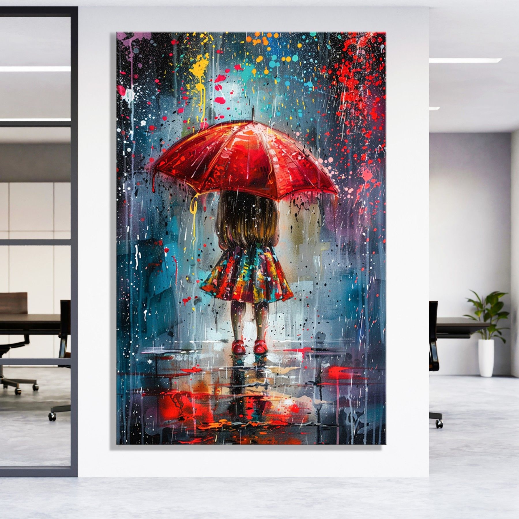 Wandbild Banksy Mädchen mit Regenschirm, Pop Art Kunst Leinwand, Acrylglas, Poster r6