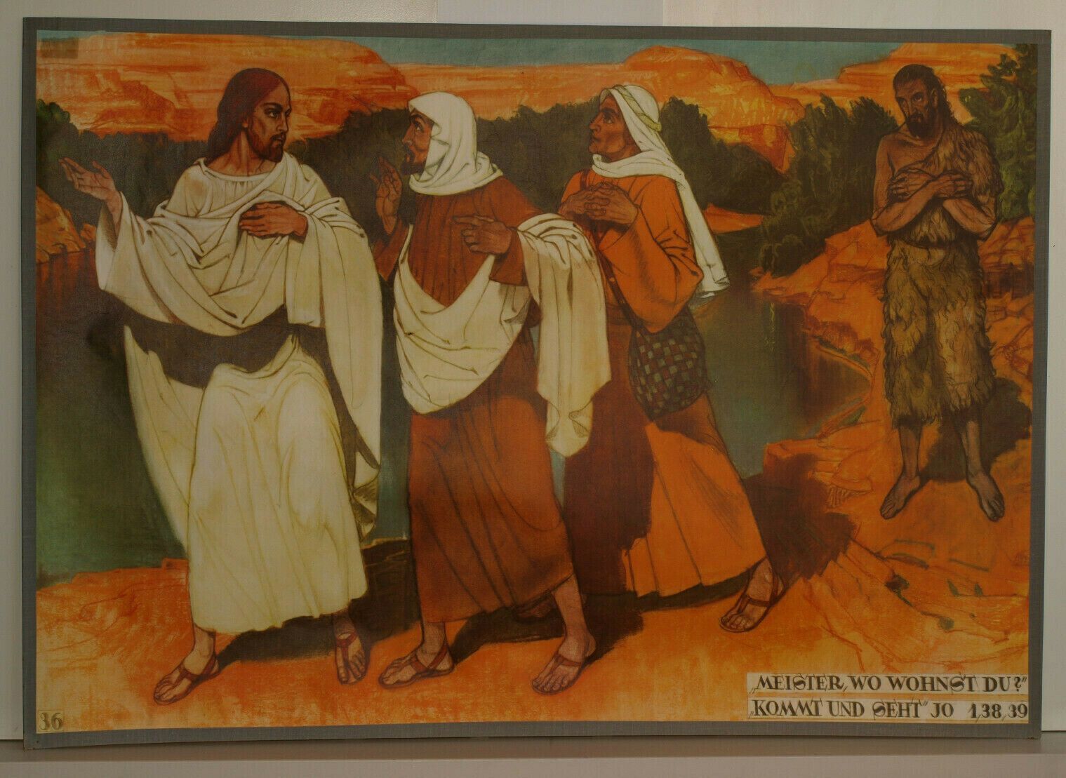 Wandbild Bibel Testament Kirche 36 Meister, wo wohnst Du? Komm und seht JO 1. 38