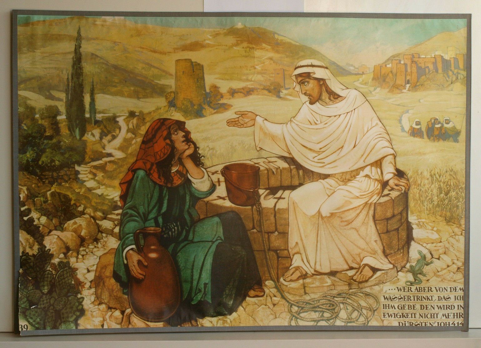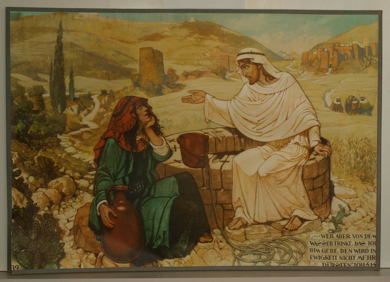 Wandbild Bibel Testament Kirche 39 ..wer aber von dem Wasser trinkt,..Ewigkeit siehe in der Liste NrL979 unter HV 39 (PA655) 1.-2. Bild , 3.-5. Bild zur Veranschaulichung der Größe beigefügt Genesis 1.Buch Mose, Lukas, Matthäus, Exodus, Kapitel, Vers usw. Bibelgeschichte in 80 Bildern, Herder-Verlag
