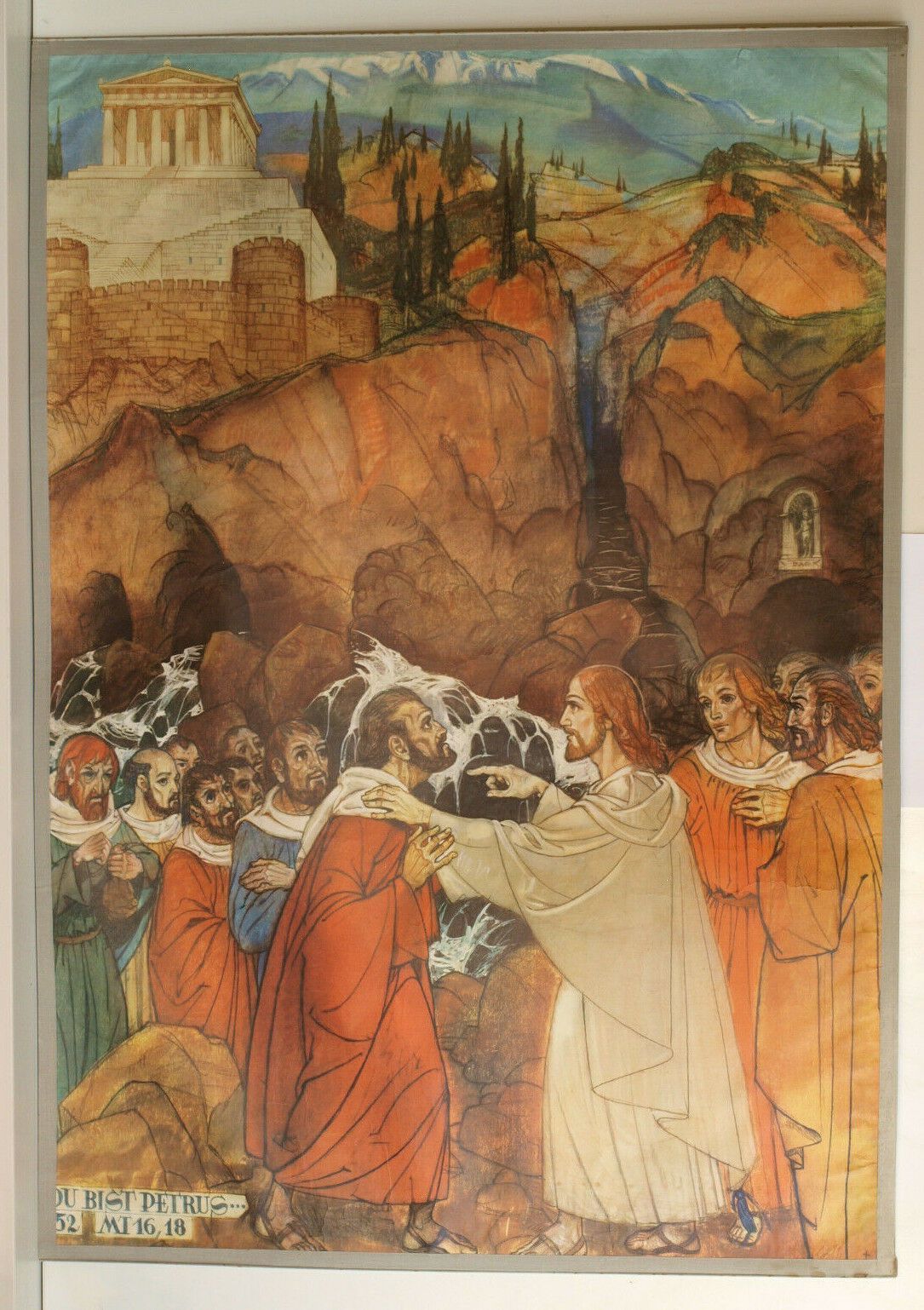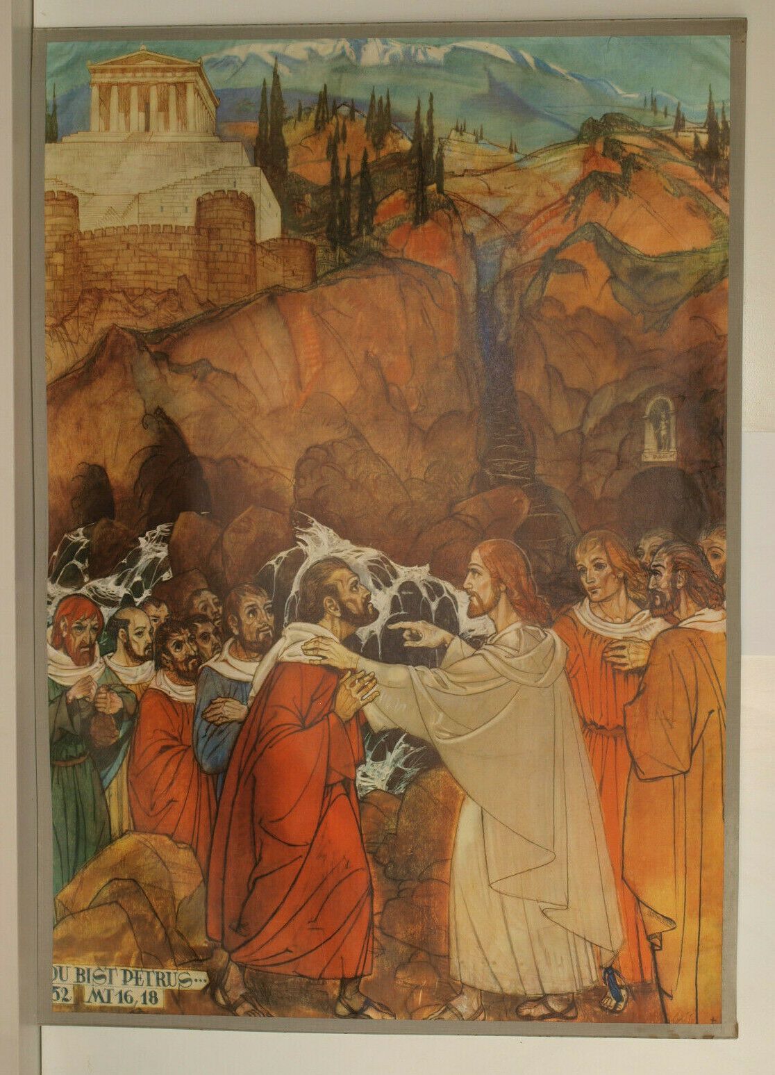 Wandbild Bibel Testament Kirche 52 Du bist Petrus MT 16,18 Bibelgeschichte siehe in der Liste NrL979 unter HV 52 (PA680) 1.-2. Bild , 3.-5. Bild zur Veranschaulichung der Größe beigefügt Genesis 1.Buch Mose, Lukas, Matthäus, Exodus, Kapitel, Vers usw. Bibelgeschichte in 80 Bildern, Herder-Verlag, Fr