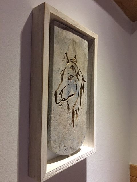 Antiker Dachziegel mit eingraviertem Pferdekopf im Sandstrahlverfahren Massiver Echt-Holzrahmen mit stilvollem Kalkfinish Mediterraner Landhaus-Look – perfekt für eine stilvolle Innenraumgestaltung Jedes Stück ein Unikat mit natürlichen Altersspuren für eine authentische Vintage-Optik