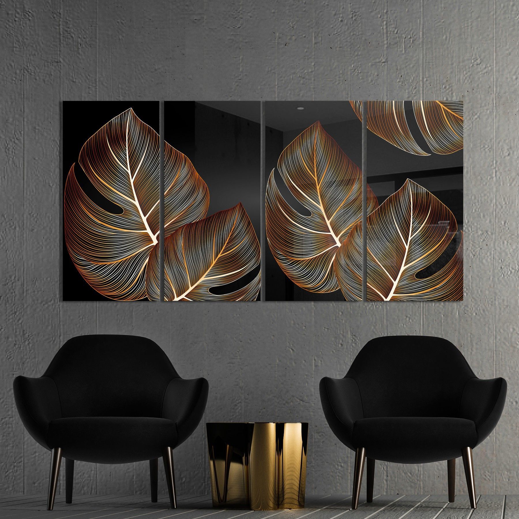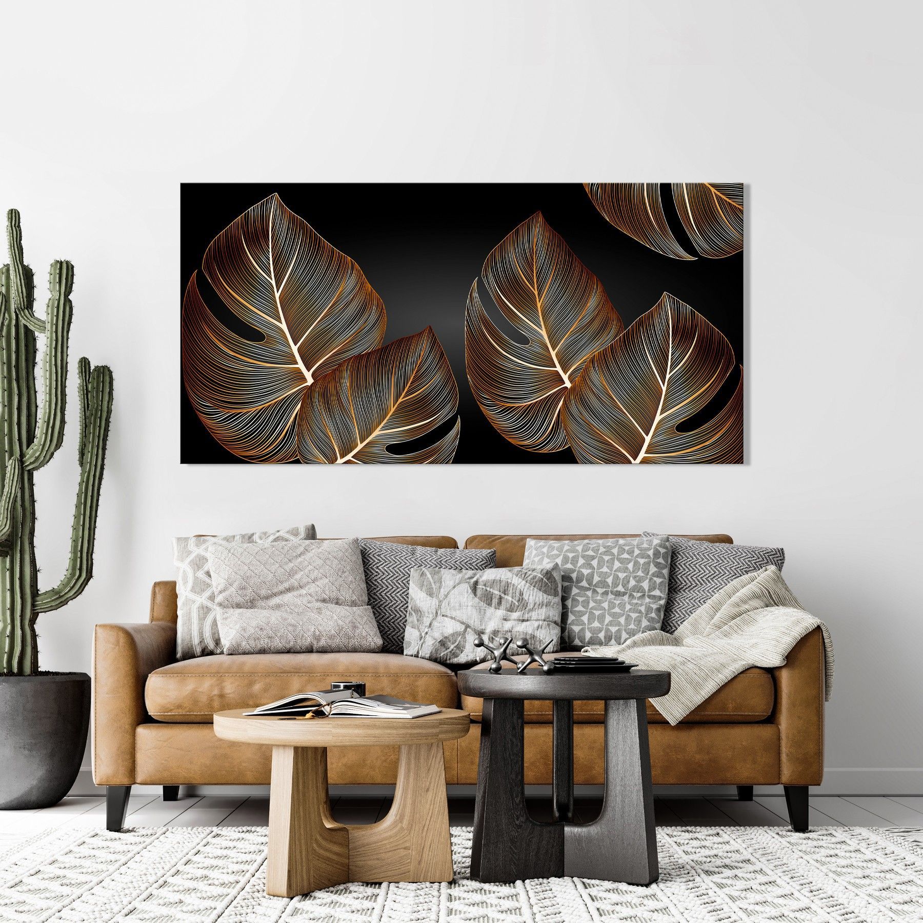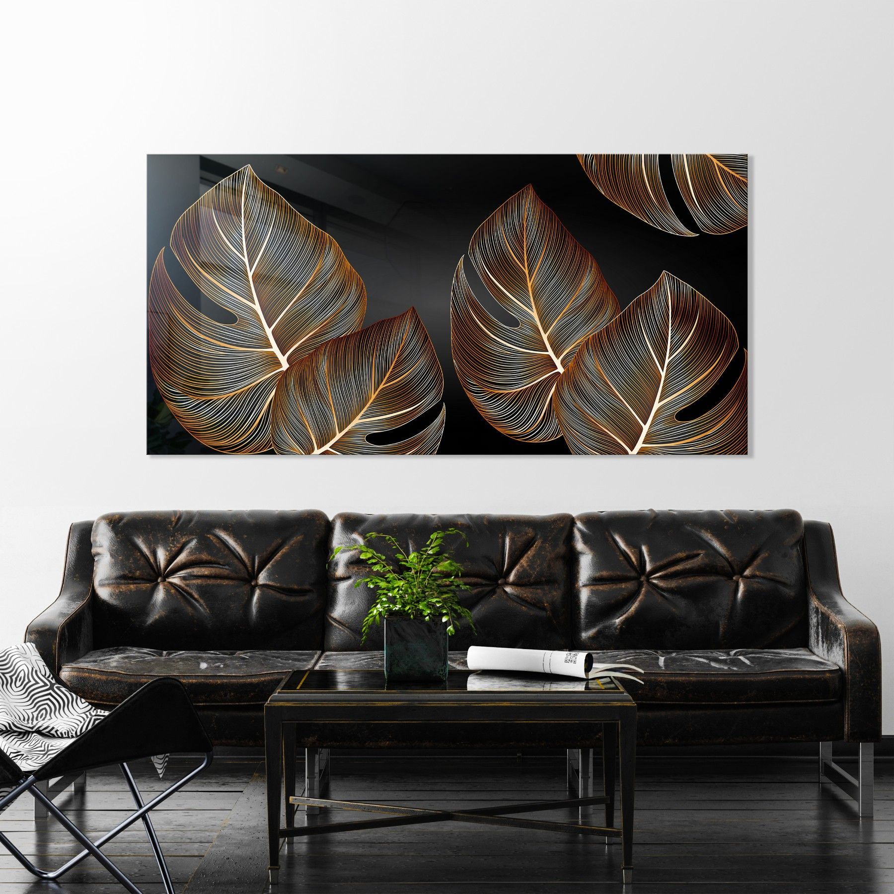 Wandbild Blätter, Luxus Goldene Pflanzen, Moderne Wandkunst Acrylglas - Leinwand b4