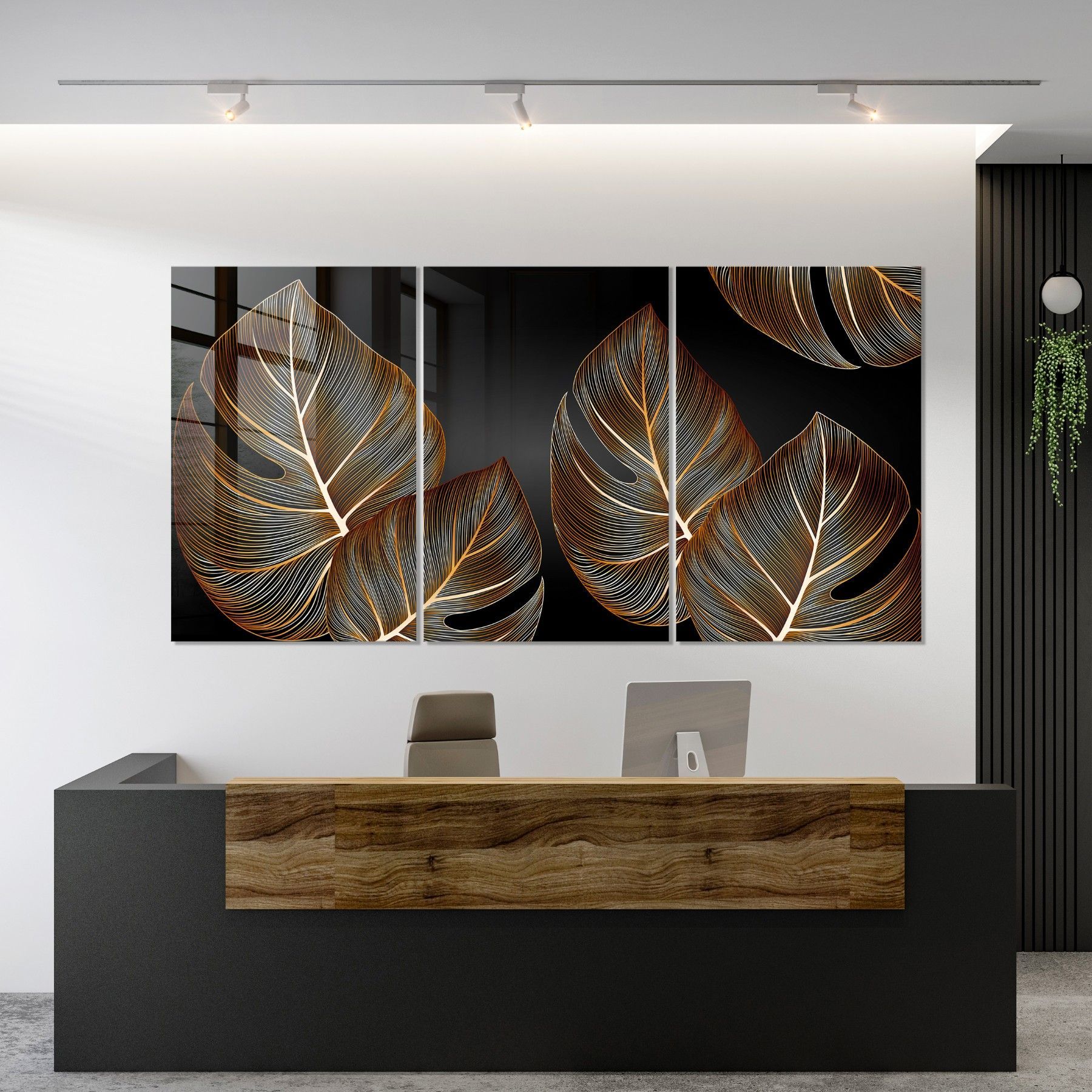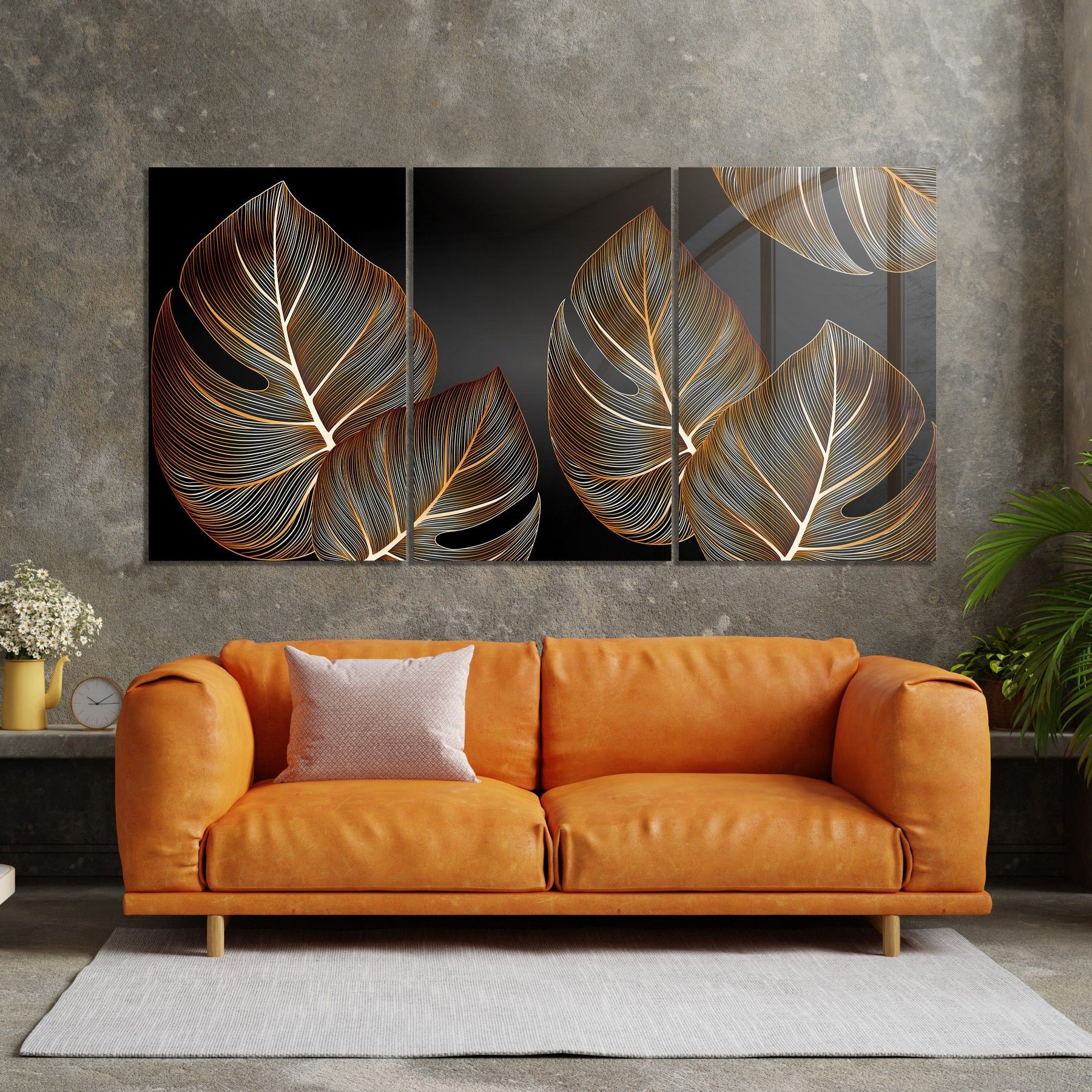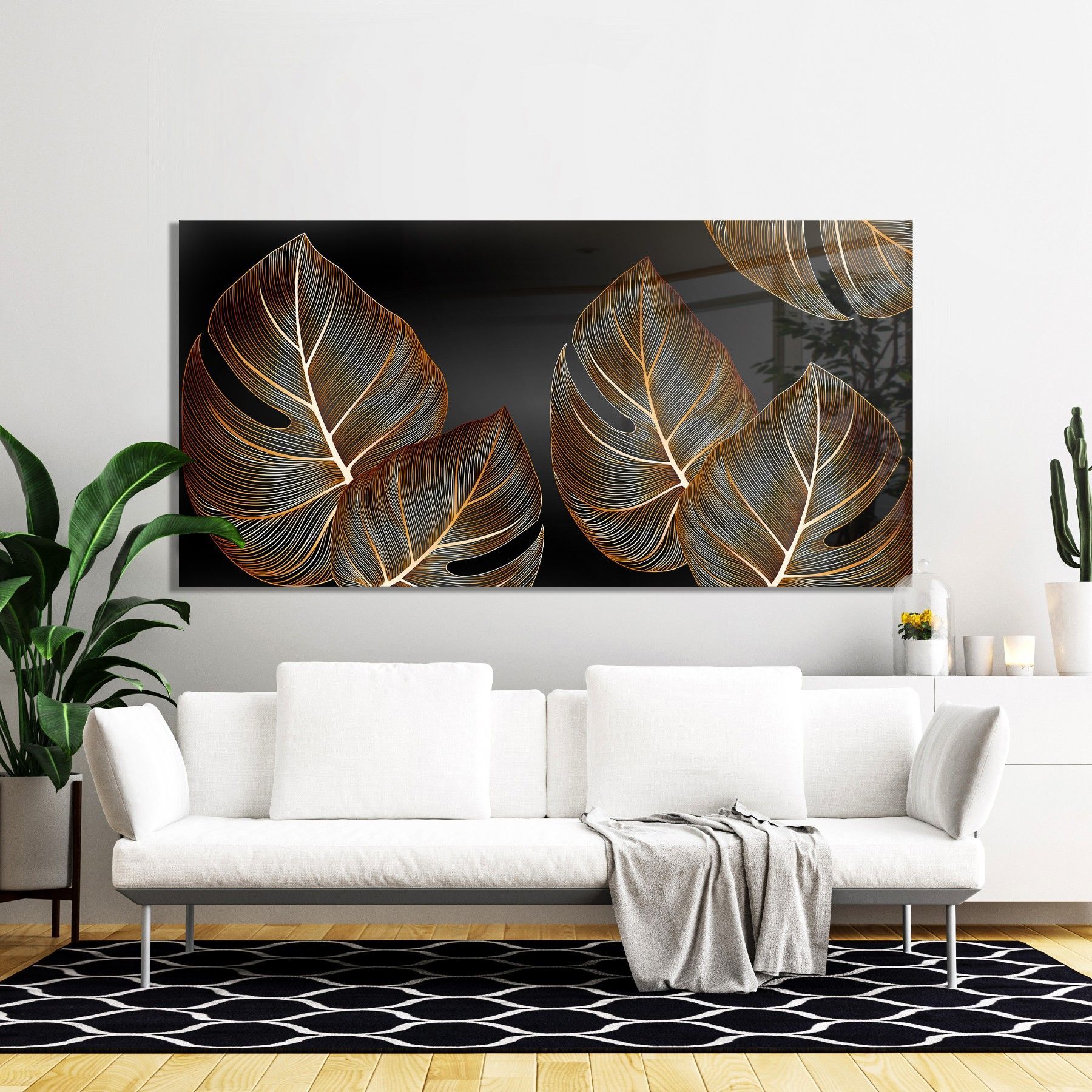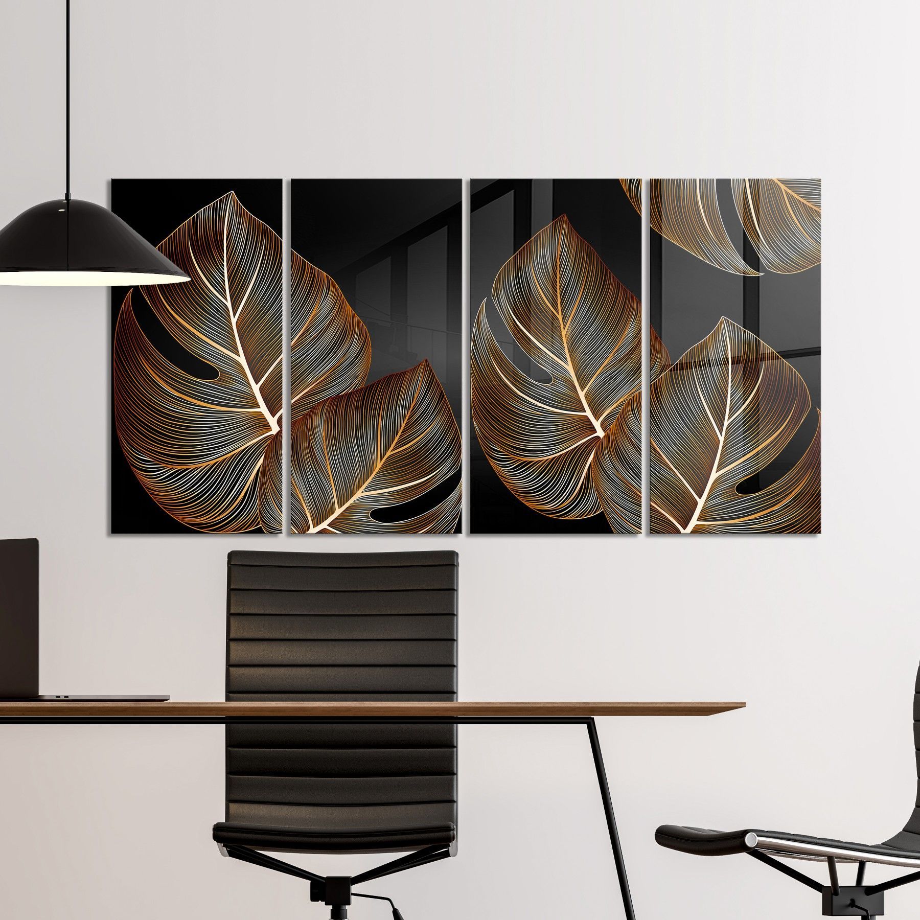 Wandbild Blätter, Luxus Goldene Pflanzen, Moderne Wandkunst Acrylglas - Leinwand b4