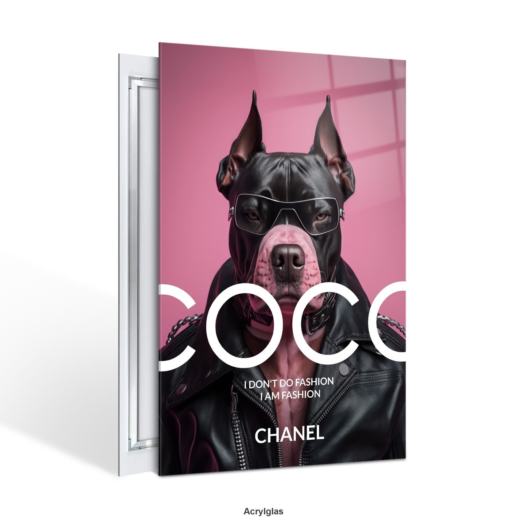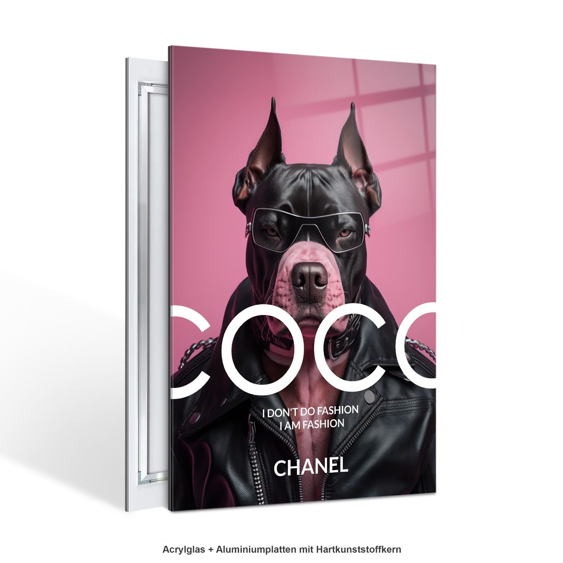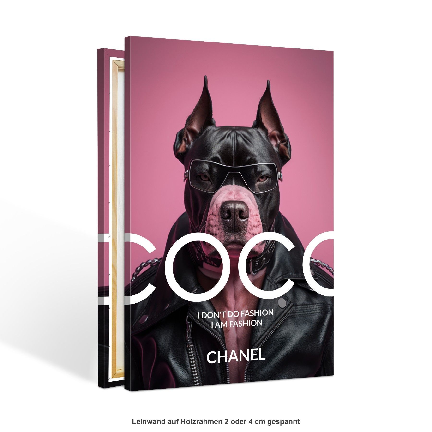Wandbild Coco Chanel Mode Rosa bulldogge Leinwand , Acrylglas + Aluminium , Poster