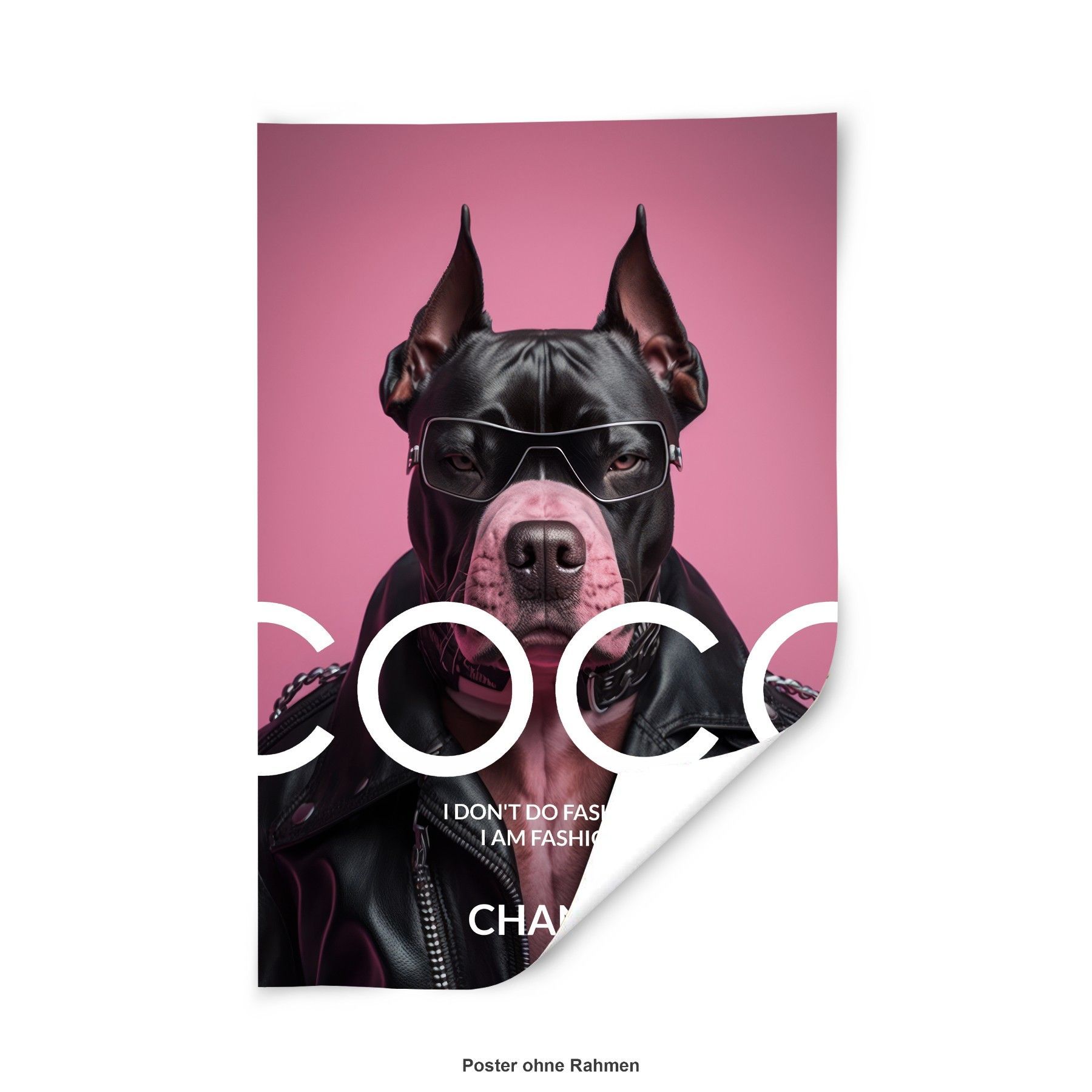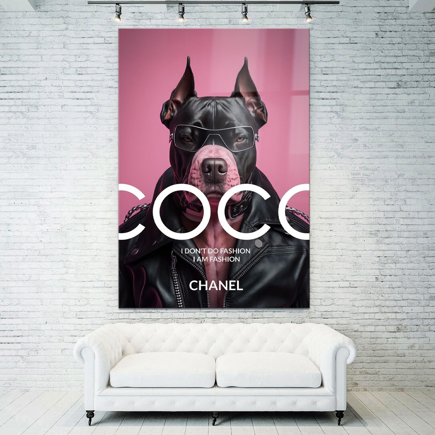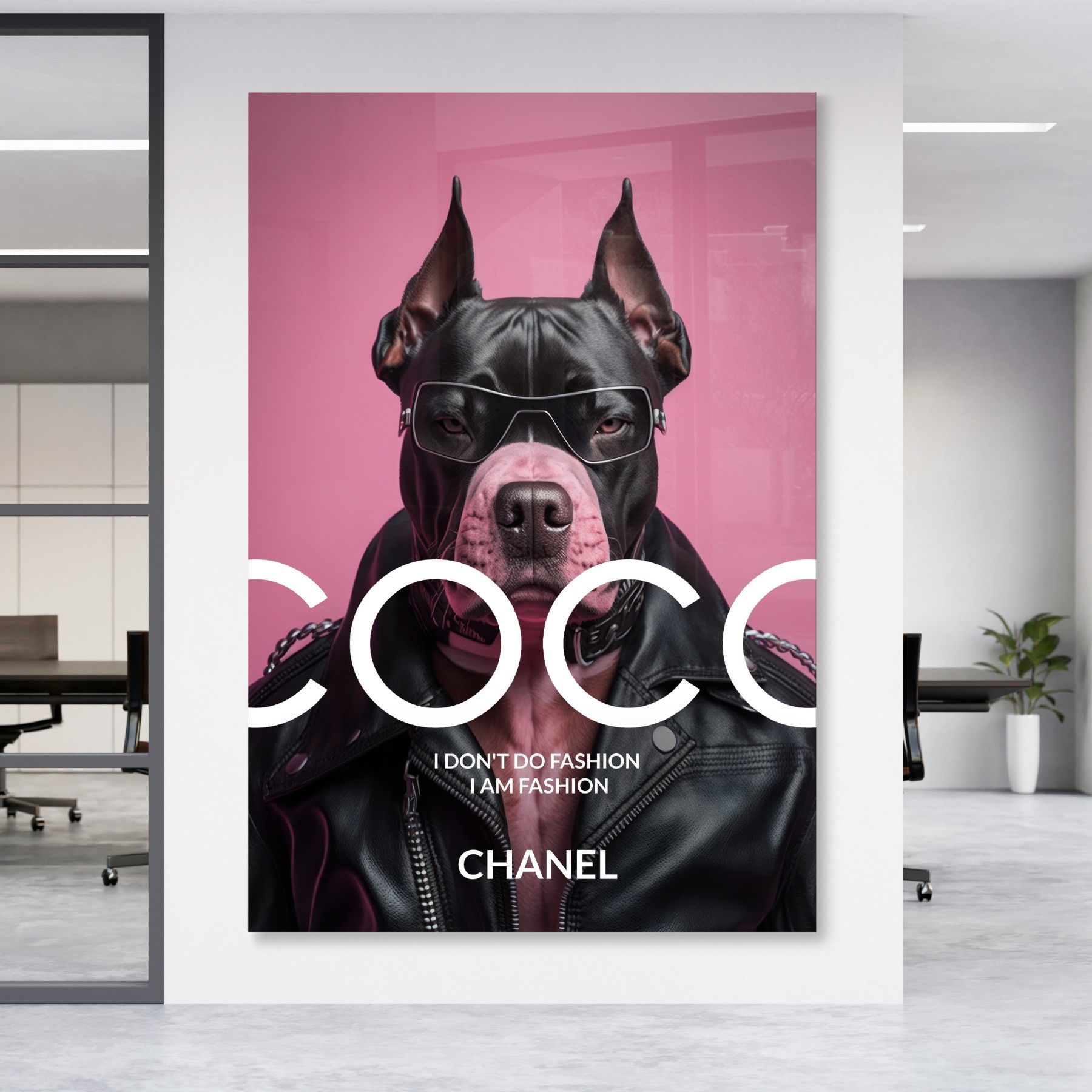 Wandbild Coco Chanel Mode Rosa bulldogge Leinwand , Acrylglas + Aluminium , Poster