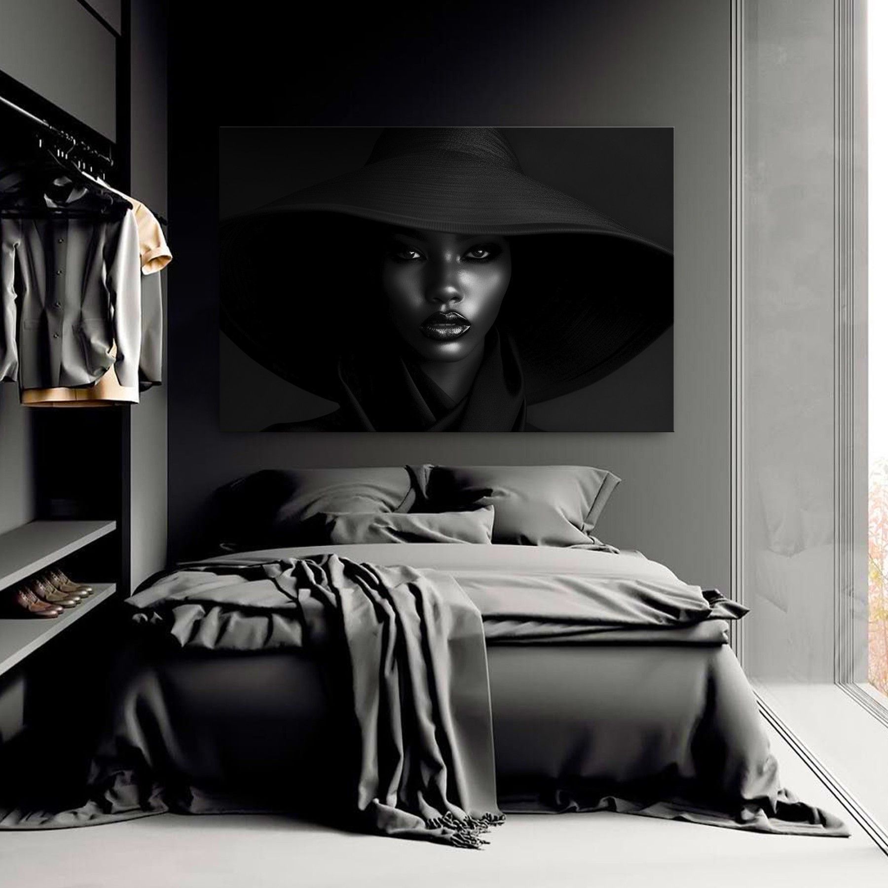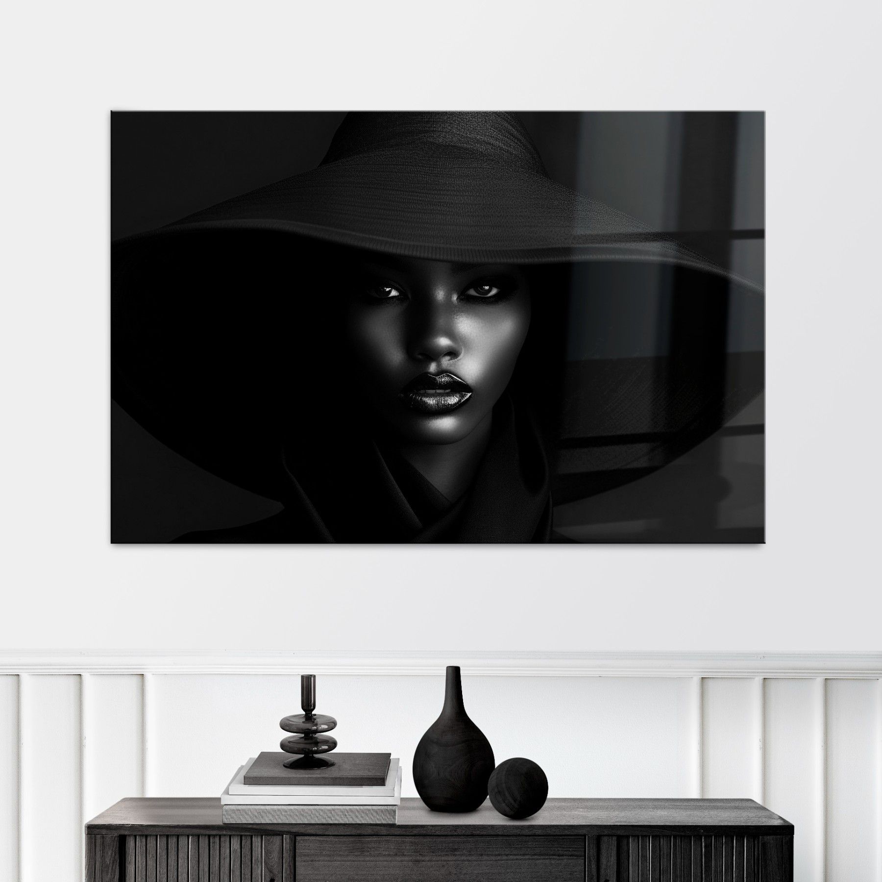 Wandbild Elegante Frau mit Hut Leinwand , Acrylglas , Poster Modern Deko Kunst
