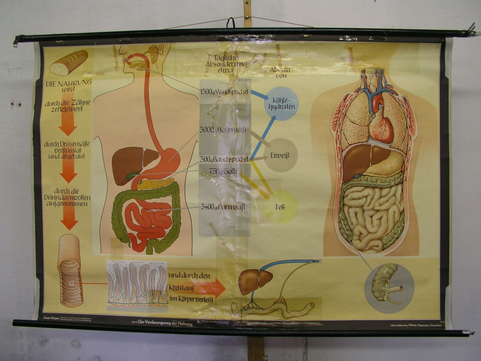 Wandbild Ernährung Zahn Magen Darm Doktor 168x114cm vintage doc wall chart 1960 Siehe in der Liste unter NrL23 Unser Körper Tafel 2 Der Verdauungsweg der Nahrung alte Version (CH338) Kartensammler (allumfassend...speziell deutsche bezahlbare Karten ab 1900) verkauft hier seine doppelten Exemplare de