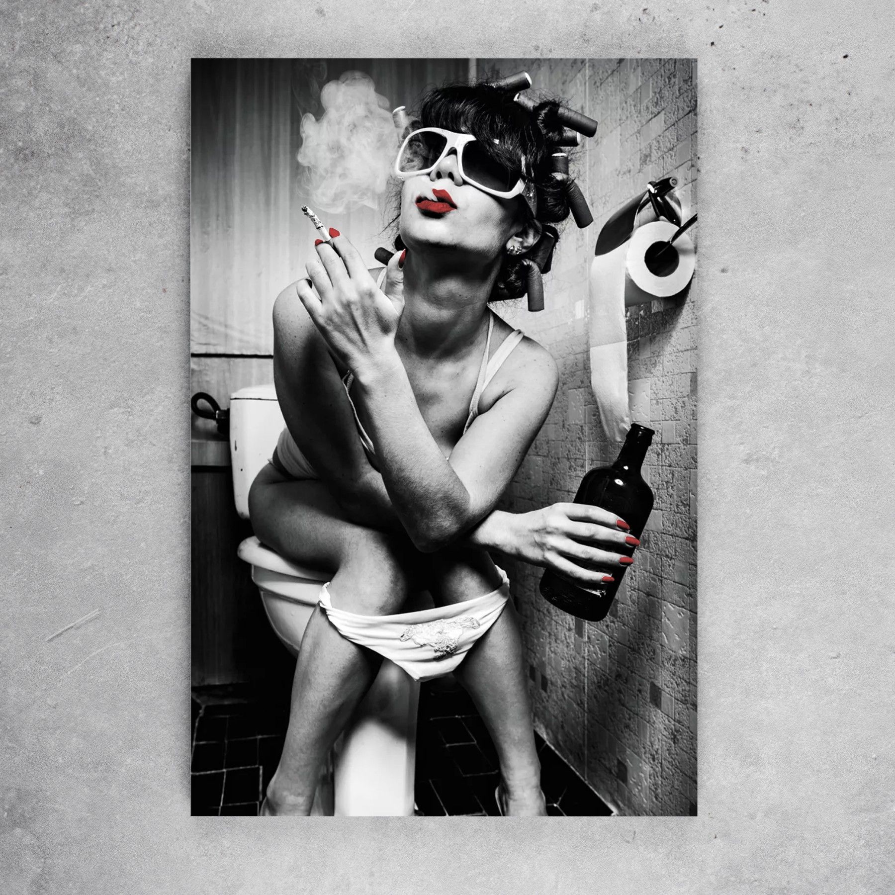 Wandbild Frau Im Badezimmer , trinkt und raucht Poster , Acrylglas , Leinwand Kunst