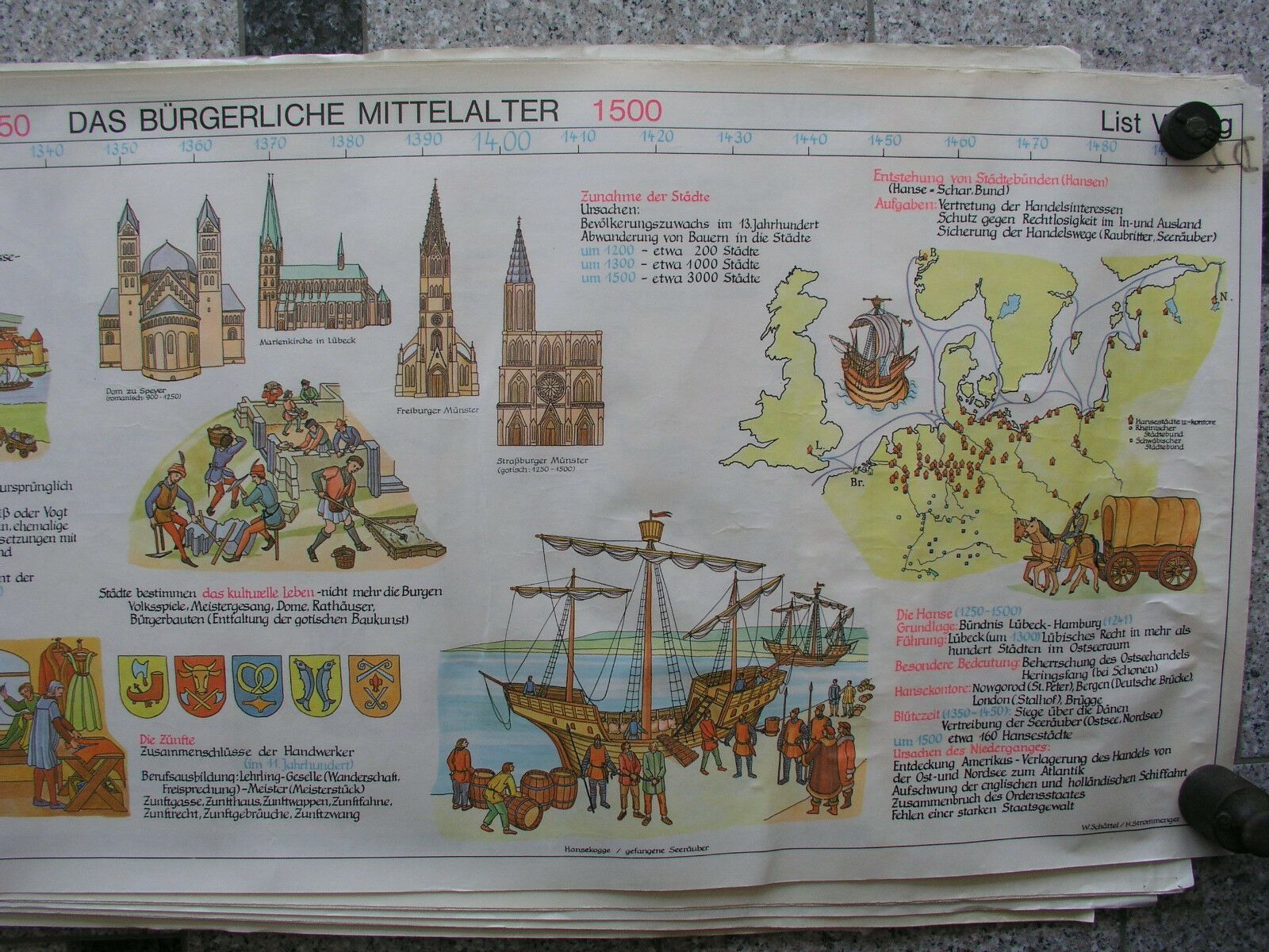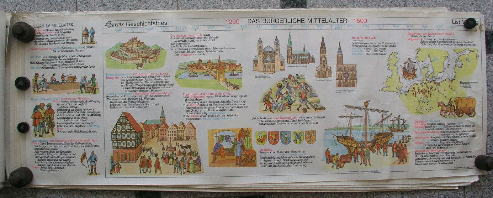 Wandbild Geschichtsfries Bürger Mittelalter 139x50 vintage middle ages wall card Siehe in der Liste unter NrL682 Das Bürgerliche Mittelalter (PL31) Detailfotos von dieser Karte Kartensammler (allumfassend...speziell deutsche bezahlbare Karten ab 1900) verkauft hier seine doppelten Exemplare der Schu